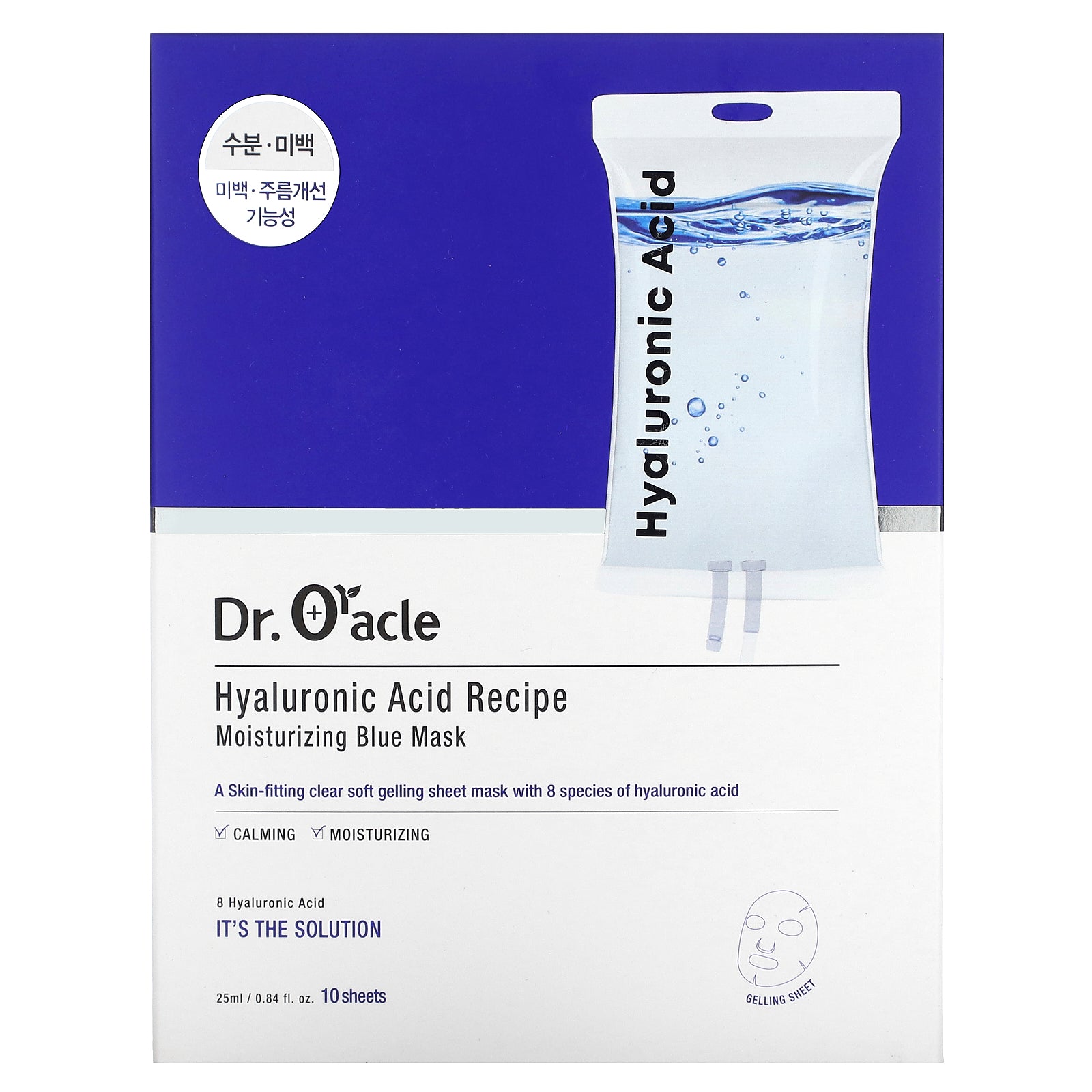 A Skin-fitting clear soft gelling sheet mask with 8 species of hyaluronic acid.