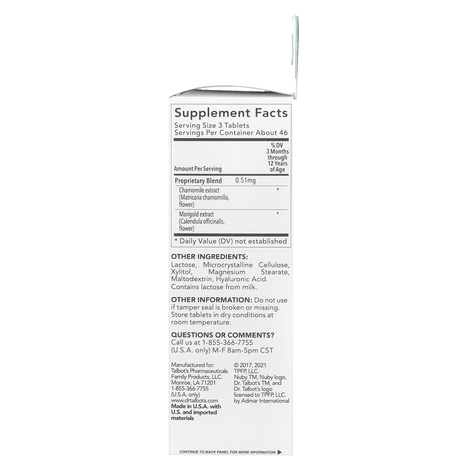 Dr. Talbot's Chamomile Soothing Tablets are developed to help calm, relax, & soothe upset ot restless babies of teething age. Containing a special blend of natural botanicals, the quick-dissolve tablets assist to calm, relax, & soothe your child, helping both you and your little one get much needed rest. A must have for your child's wellness kit, Chamomile Soothing Tablets are the safe choice for at home and on the go.