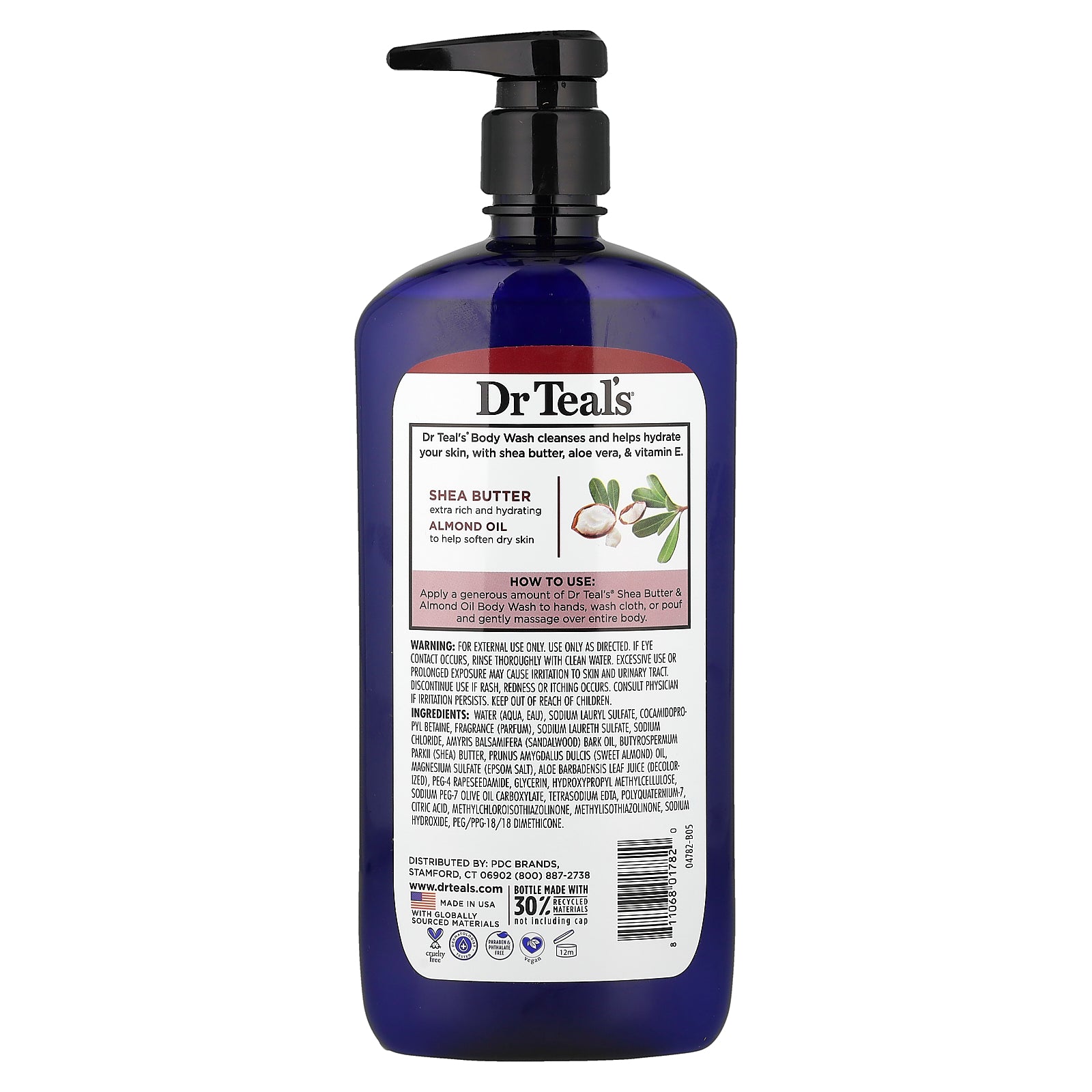 Apply a generous amount of Dr Teal's® Shea Butter & Almond Oil Body Wash to hands, wash cloth, or pouf and gently massage over entire body.