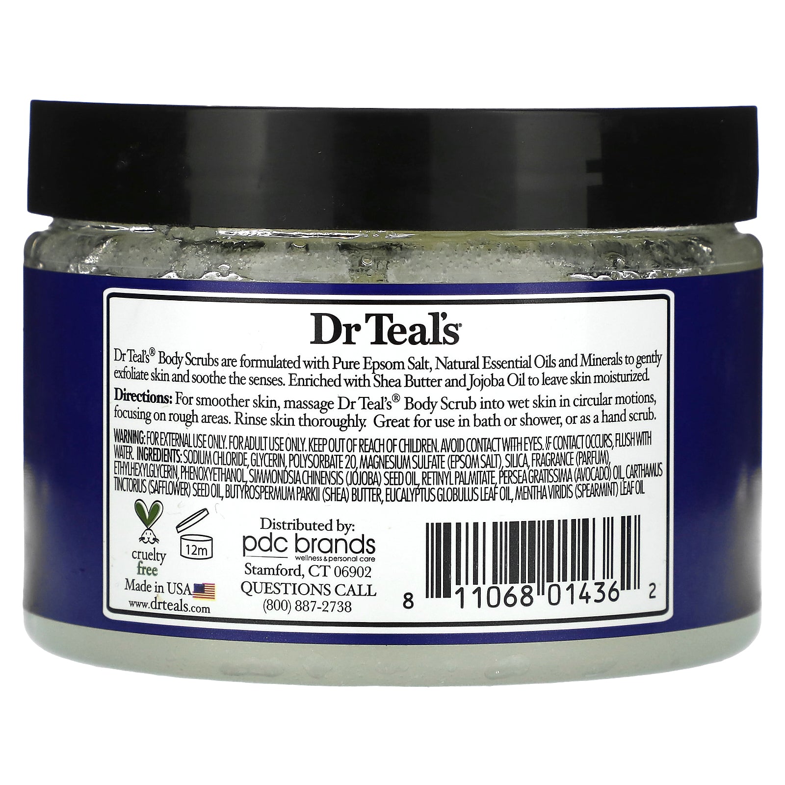 Dr Teal's® Body Scrubs are formulated with Pure Epsom Salt, Natural Essential Oils and Minerals to gently exfoliate skin and soothe the senses. Enriched with Shea Butter and Jojoba Oil to leave skin moisturized.