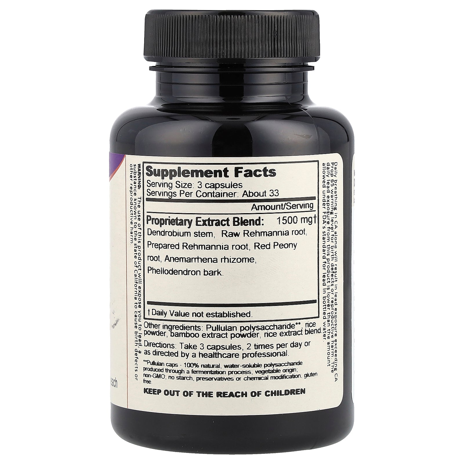 Proprietary Extract Blend: Dendrobium stem, Raw Rehmannia root, Prepared Rehmannia root, Red Peony root, Anemarrhena rhizome, Phellodendron bark. |