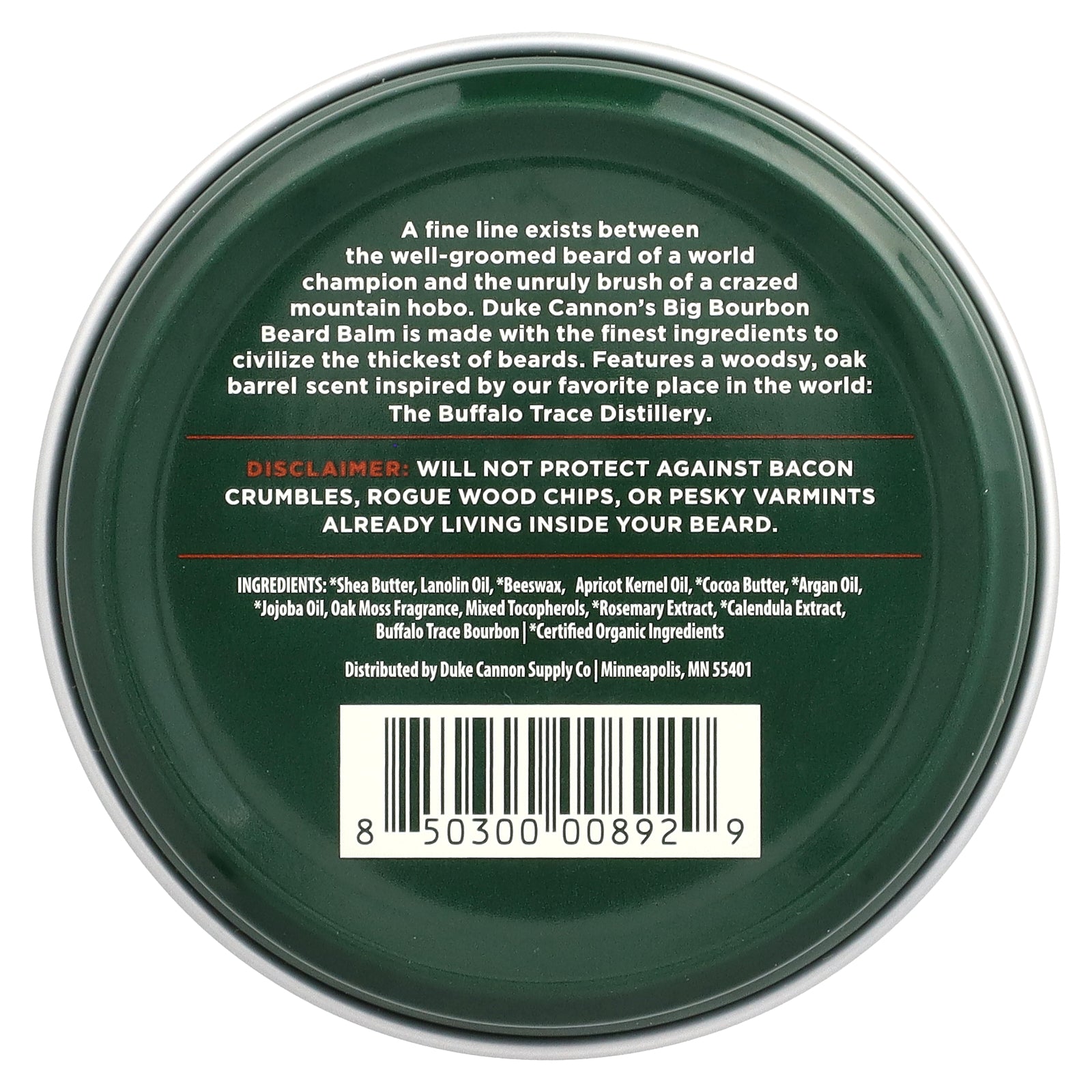 A fine line exists between the well-groomed beard of a world champion and the unruly brush of a crazed mountain hobo. Duke Cannon's Big Bourbon Beard Balm is made with the finest ingredients to civilize the thickest of beards. Features a woodsy, oak barrel scent inspired by our favorite place in the world: The Buffalo Trace Distillery.