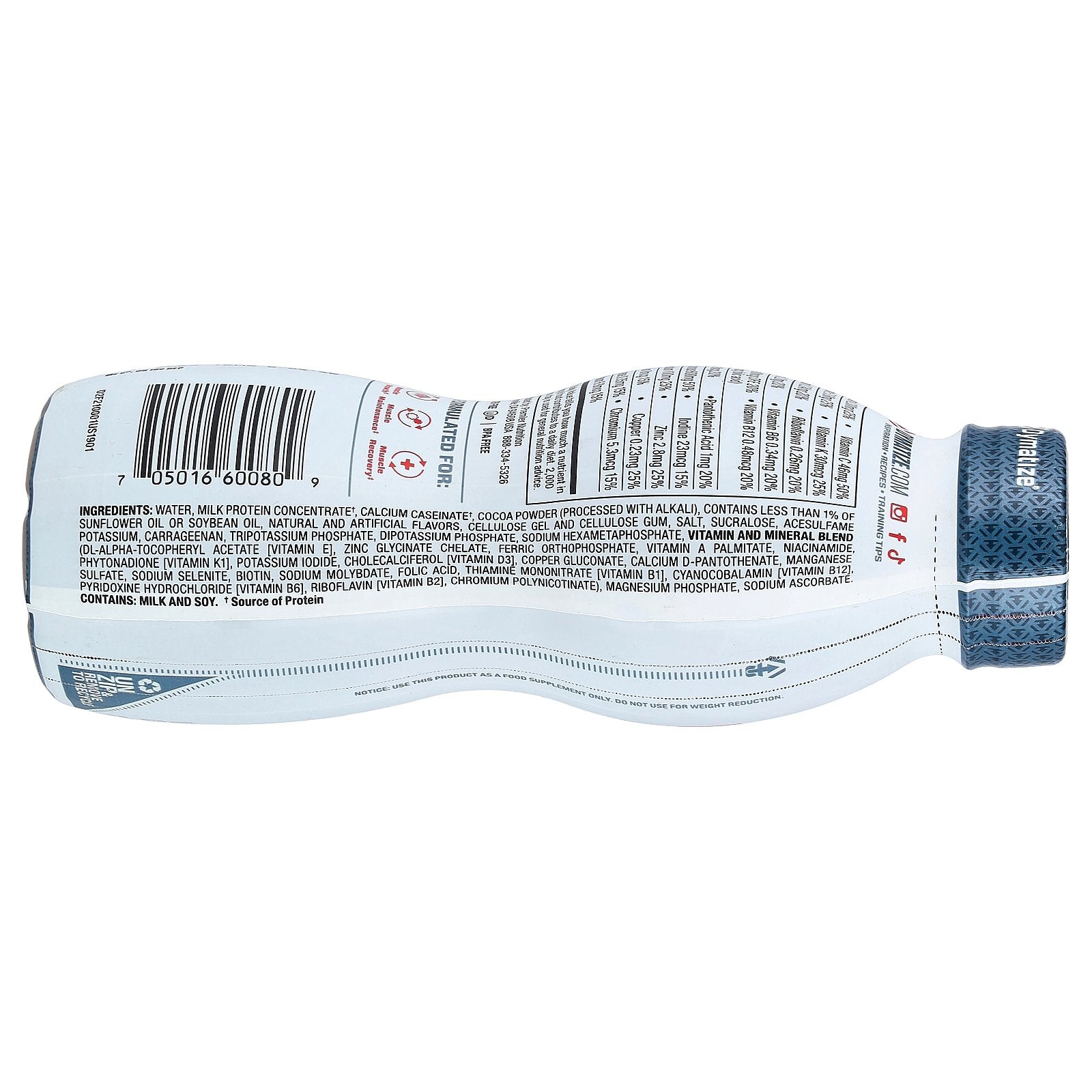 Water, milk protein concentrate, calcium caseinate†, cocoa powder (processed with alkali), contains less than 1% of: sunflower oil or soybean oil, natural and artificial flavors, cellulose gel and cellulose gum, salt, sucralose, acesulfame potassium, carrageenan, tripotassium phosphate, dipotassium phosphate, sodium hexametaphosphate, Vitamin and Mineral Blend (Dl-alpha-tocopheryl acetate [vitamin e], zinc glycinate chelate, ferric orthophosphate, vitamin a palmitate, niacinamide, phytonadione [vitamin k1], potassium iodide, cholecalciferol [vitamin d3], copper gluconate, calcium d-pantothenate, manganese sulfate, sodium selenite, biotin, sodium molybdate, folic acid, thiamine mononitrate [vitamin b1], cyanocobalamin [vitamin b12], pyridoxine hydrochloride [vitamin b6], riboflavin [vitamin b2], chromium polynicotinate), magnesium phosphate, sodium ascorbate.
