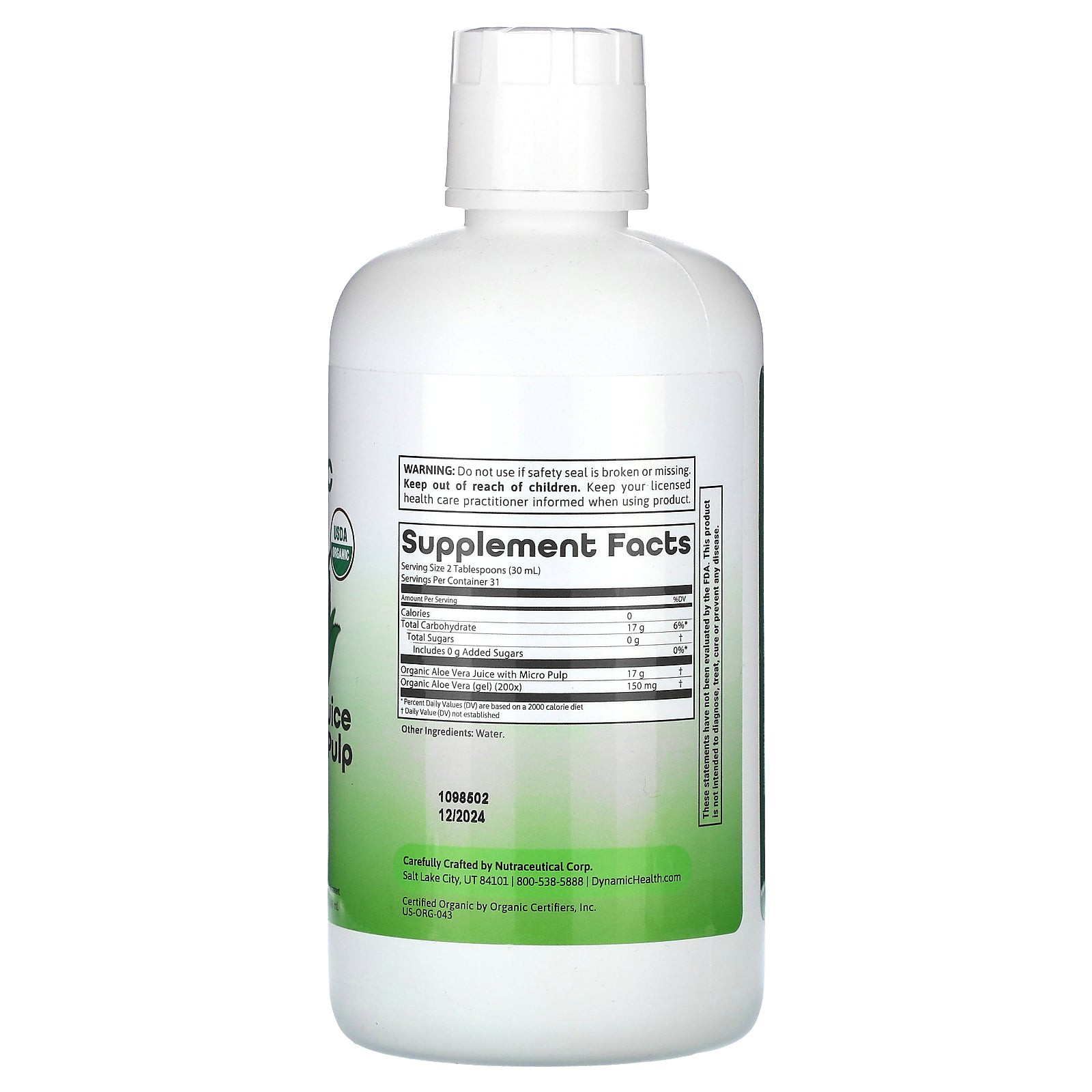 Serving size 2 tbsp (30 ml) of Organic Aloe Vera Juice with Micro Pulp. May be mixed with water, seltzer, juice or a beverage of your choice. Take with at least 250 ml (8 oz) of liquid.