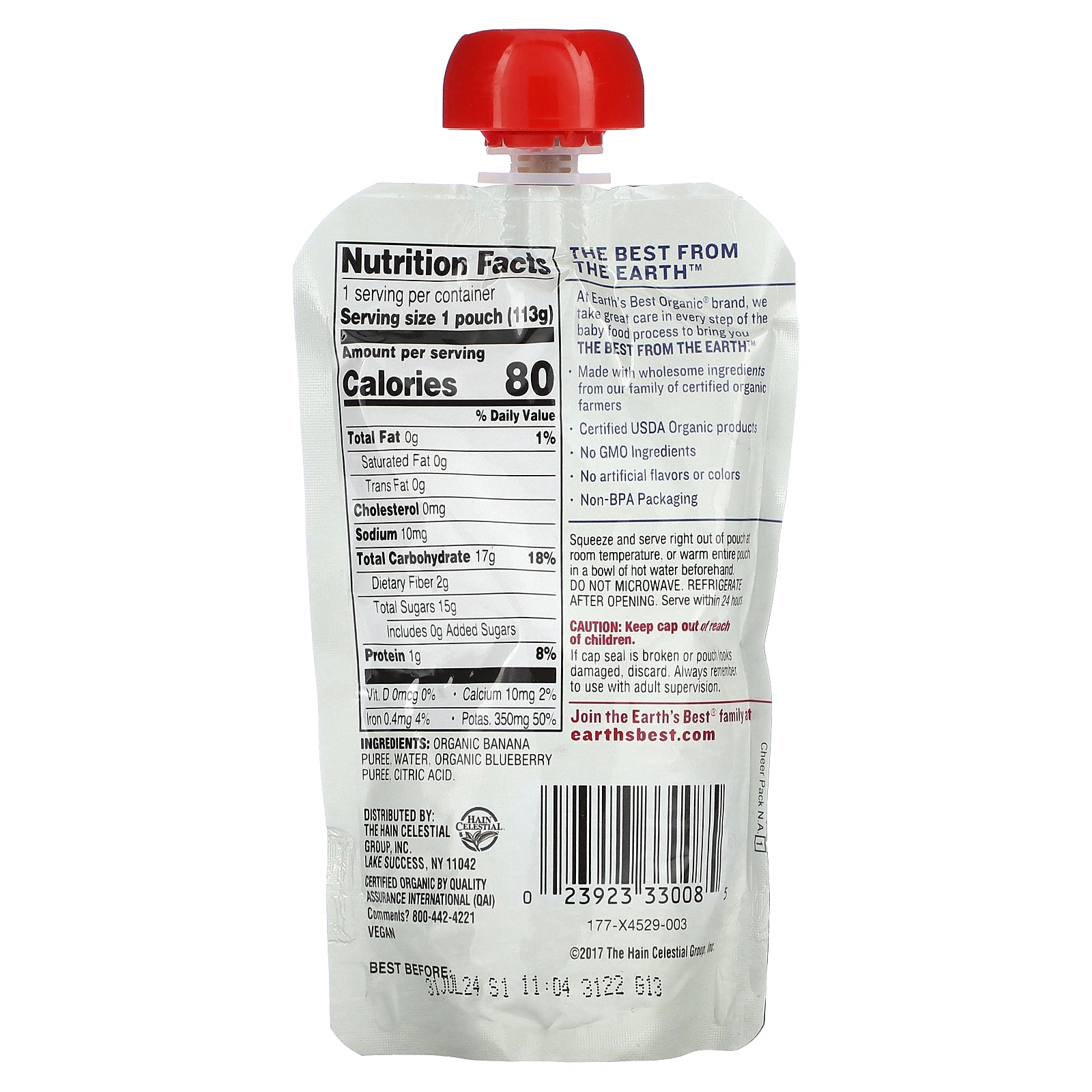 Organic banana puree, water, organic blueberry puree, citric acid.