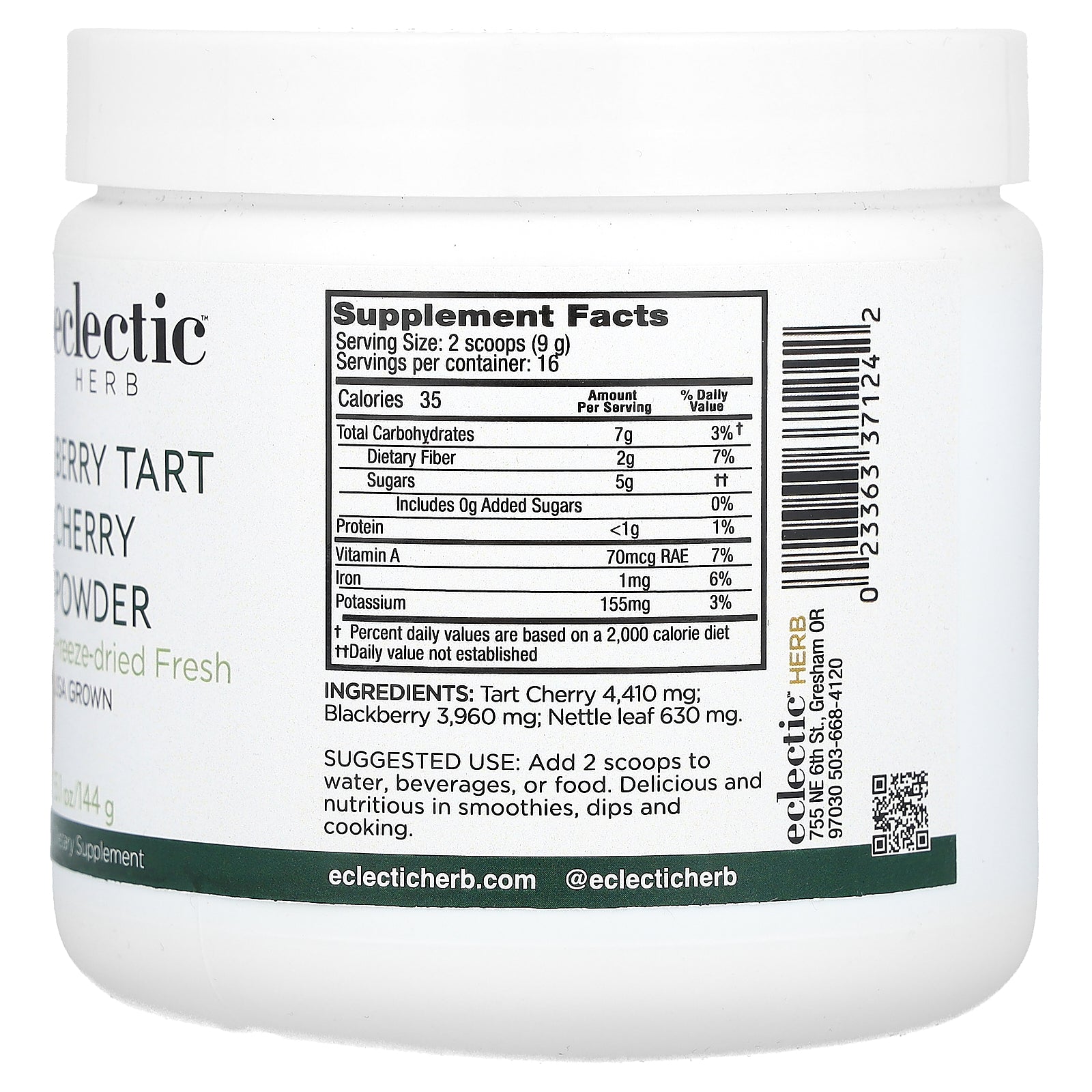 Tart cherry 4,410 mg; blackberry 3,960 mg; nettle leaf 630 mg.