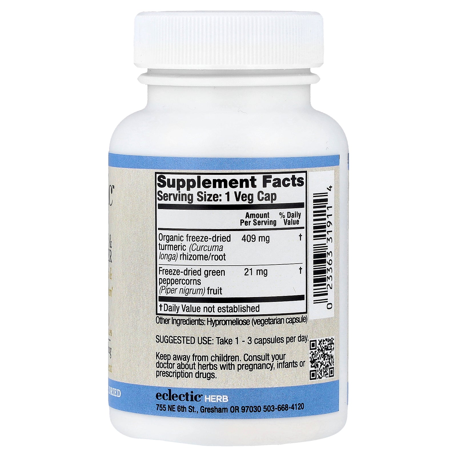 | Organic freeze-dried turmeric (Curcuma longa) rhizome/root | 409 mg | † |