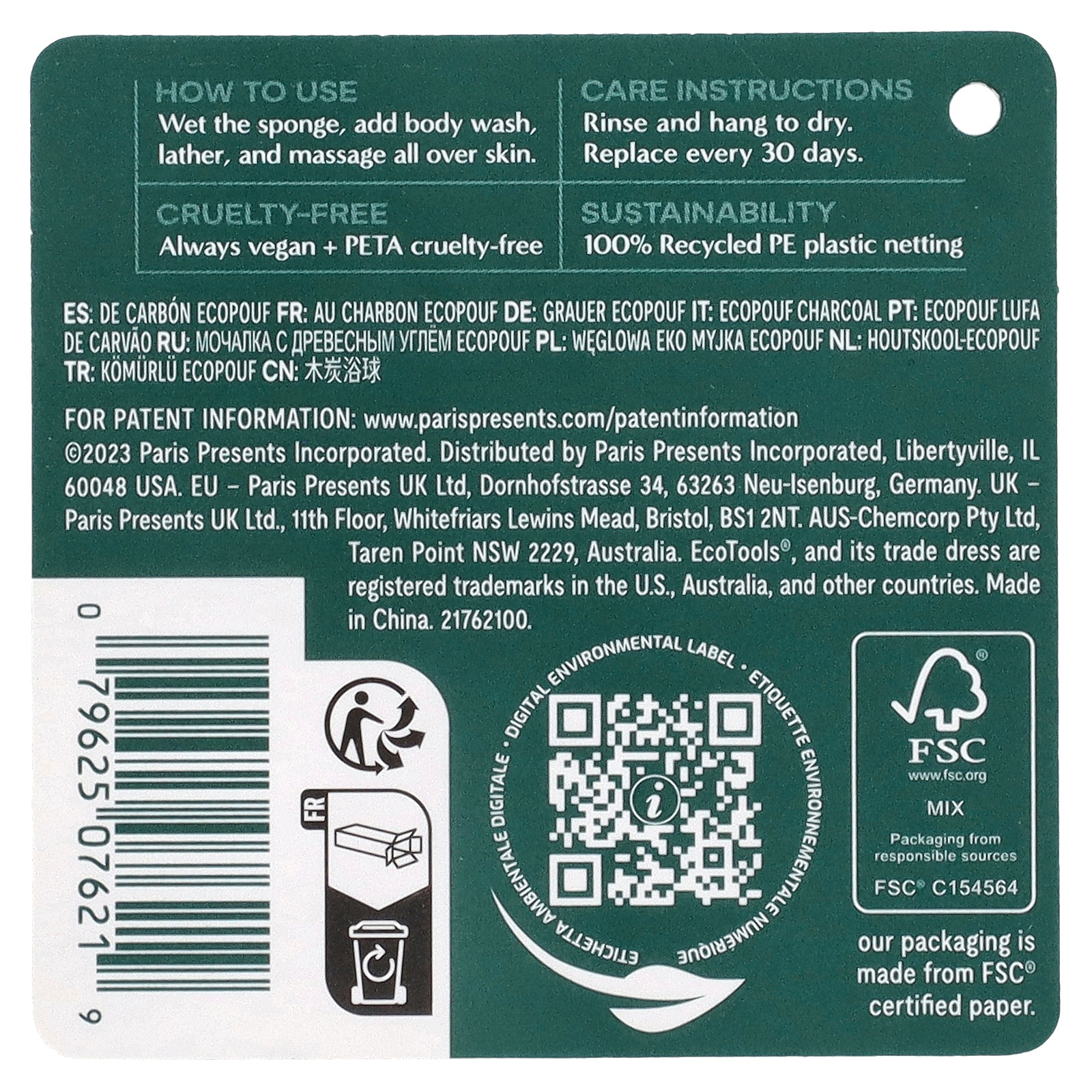 The EcoTools Charcoal Net EcoPouf® Bath Sponge Loofah is designed for a purifying cleanse and infused with bamboo charcoal. Bamboo Charcoal is known for its purifying benefits. Gathering a rich lather from the scrub, wash, or cleanser of your choice to deep clean the skin.