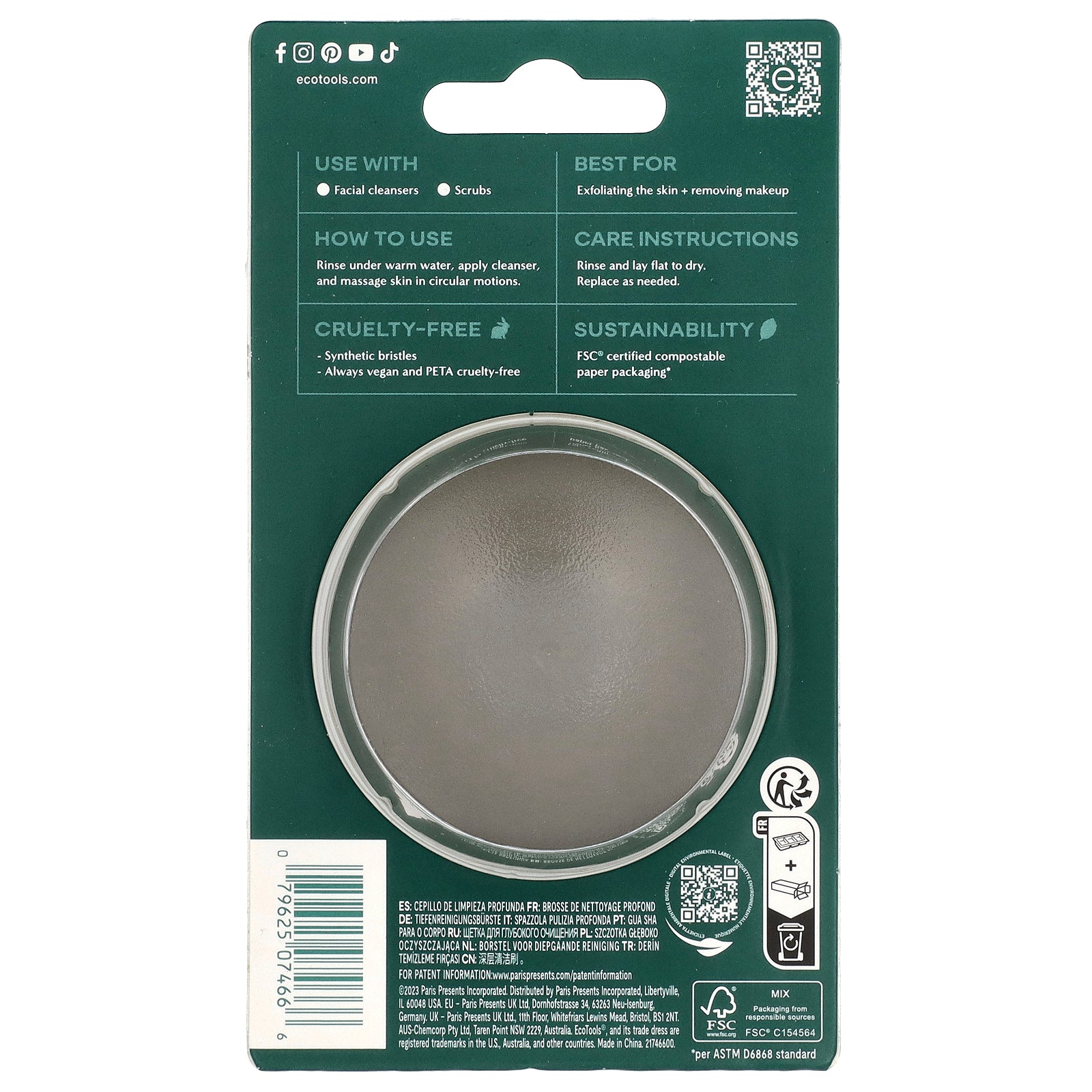 The Deep Cleansing Brush is designed with dermatologist-tested, cruelty free bristles for deep pore cleaning and exfoliation.