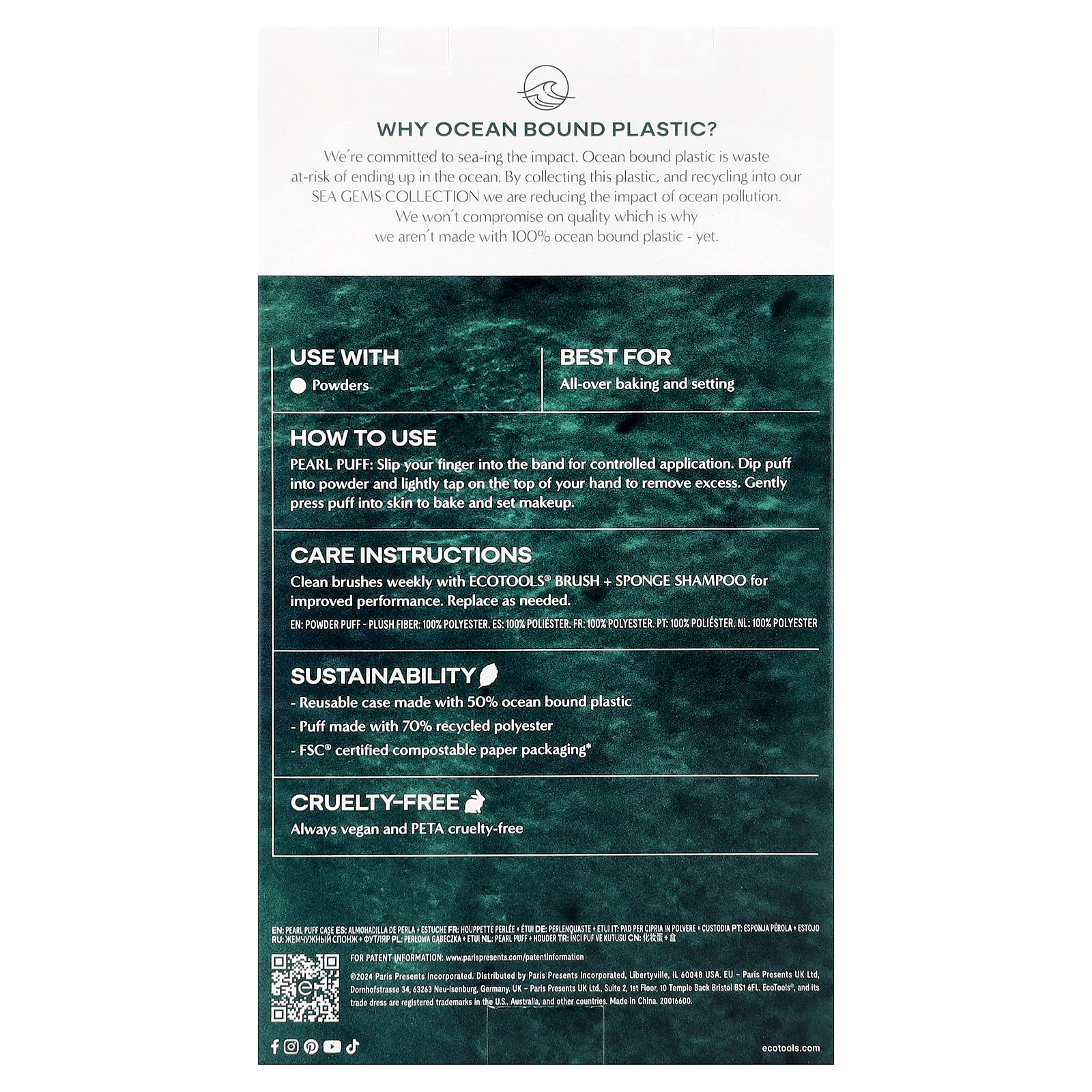 Pearl Puff: Slip your finger into the band for controlled application. Dip puff into powder and lightly tap on the top of your hand to remove excess. Gently press puff into skin to bake and set makeup.