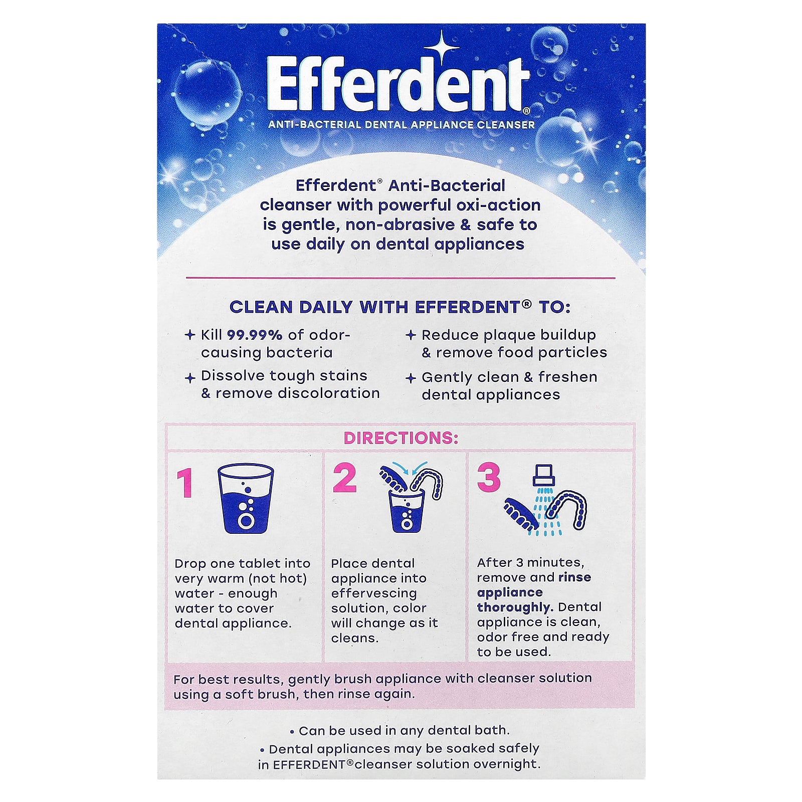 Efferdent® Anti-Bacterial cleanser with powerful oxi-action is gentle, non-abrasive & safe to use daily on dental appliances.