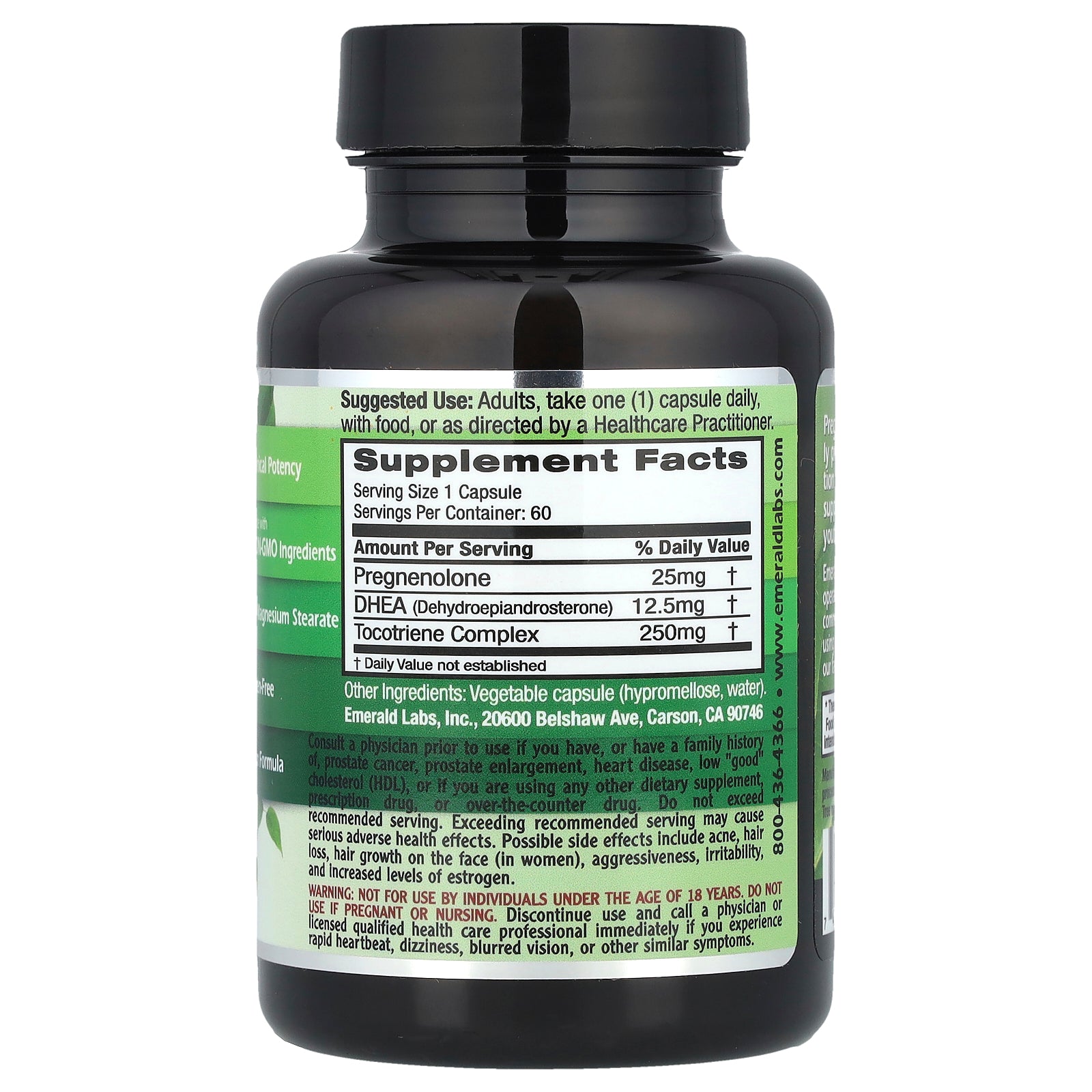 Consult a physician prior to use if you have, or have a family history of, prostate cancer, prostate enlargement, heart disease, low "good" cholesterol (HDL), or if you are using any other dietary supplement, prescription drug, or over-the-counter drug. Do not exceed recommended serving. Exceeding recommended serving may cause serious adverse health effects. Possible side effects include acne, hair loss, hair growth on the face (in women), aggressiveness, irritability, and increased levels of estrogen.