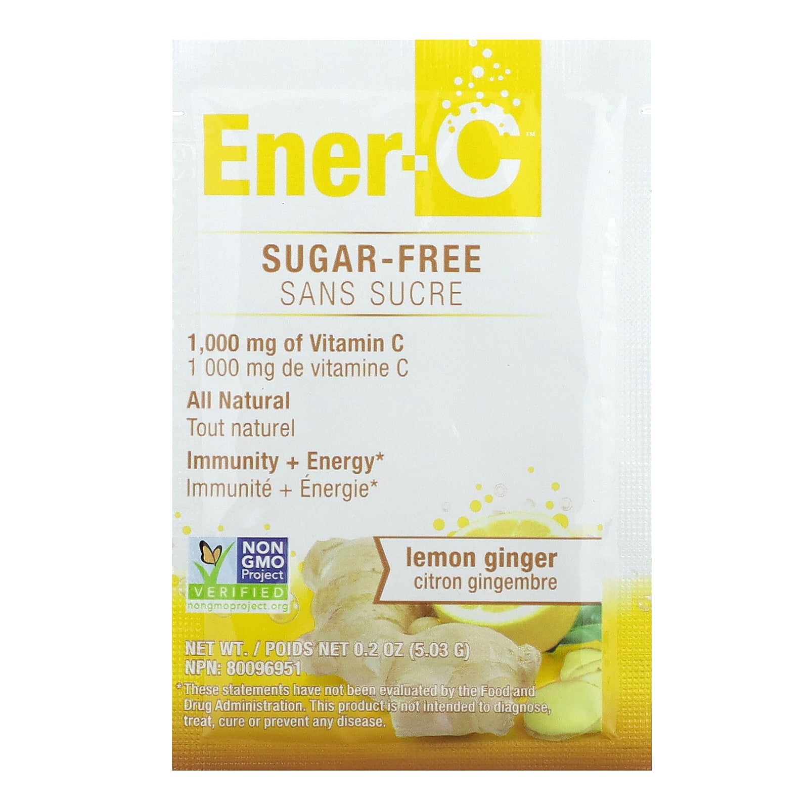 Natural ginger root powder, natural ginger powder, natural lemon juice powder, beta carotene, erythritol, tapioca maltodextrin, quercetin, purified stevia leaf extract, citric acid, sodium bicarbonate, dl-malic acid, l-tartaric acid, silicon dioxide, l-aspartic acid, l-cysteine, glycine.