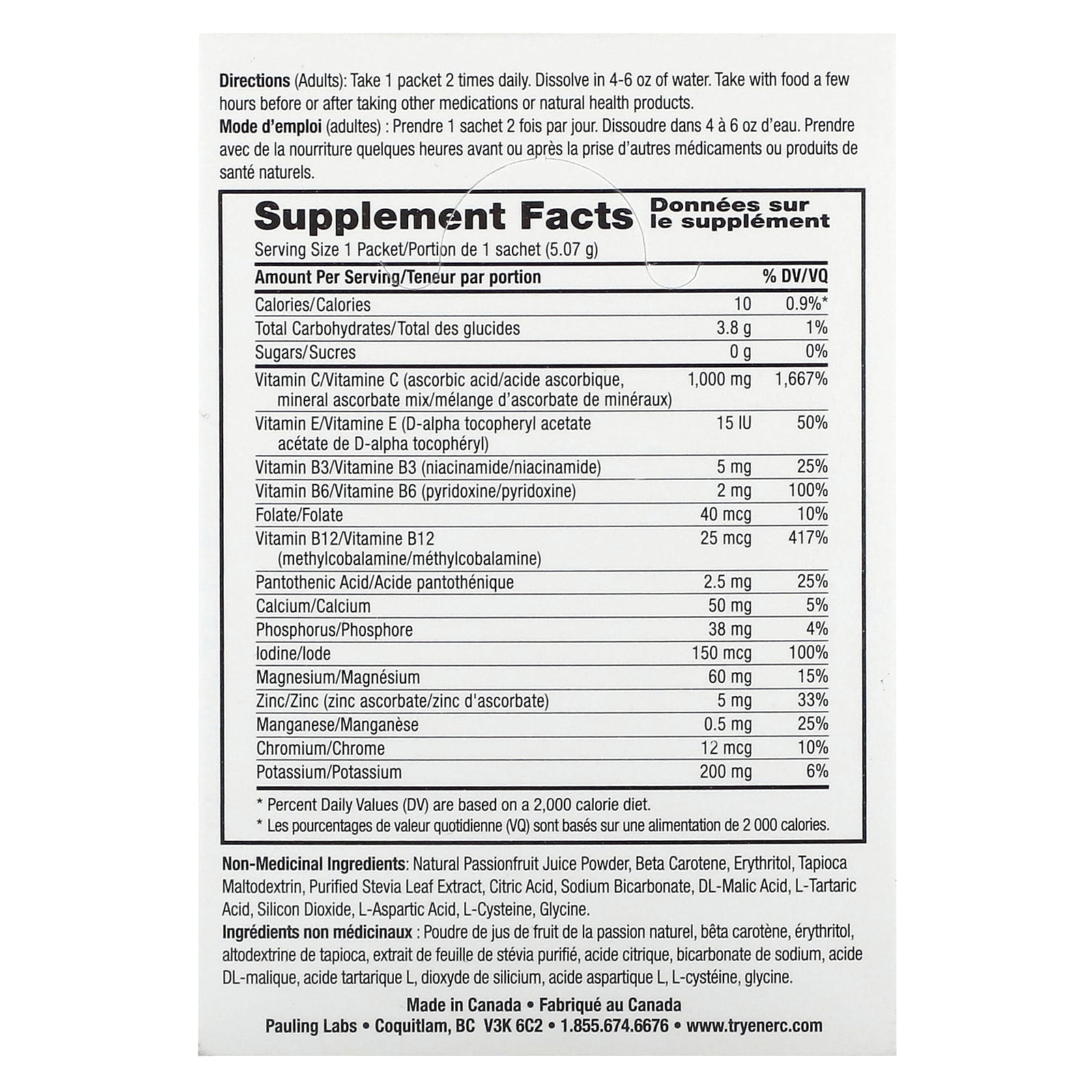 (Adults): Take 1 packet 2 times daily. Dissolve in 4-6 oz of water. Take with food a few hours before or after taking other medications or natural health products.