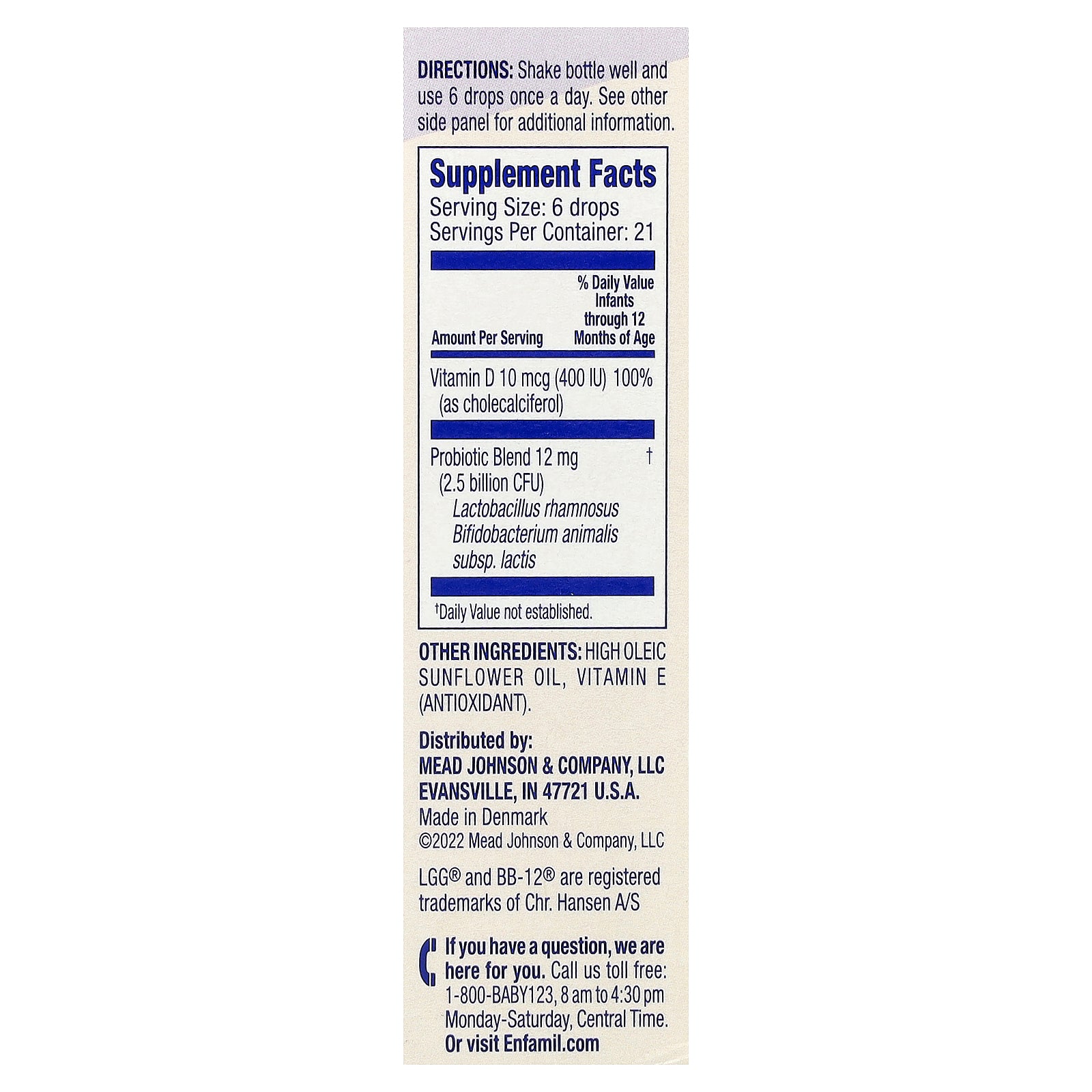 Talk to your baby's doctor about Enfamil® Dual Probiotics and Vitamin D Dietary Supplement. Consult with your baby's doctor before using in premature or immunocompromised babies or if consuming other products that have probiotics, such as supplements or formulas.