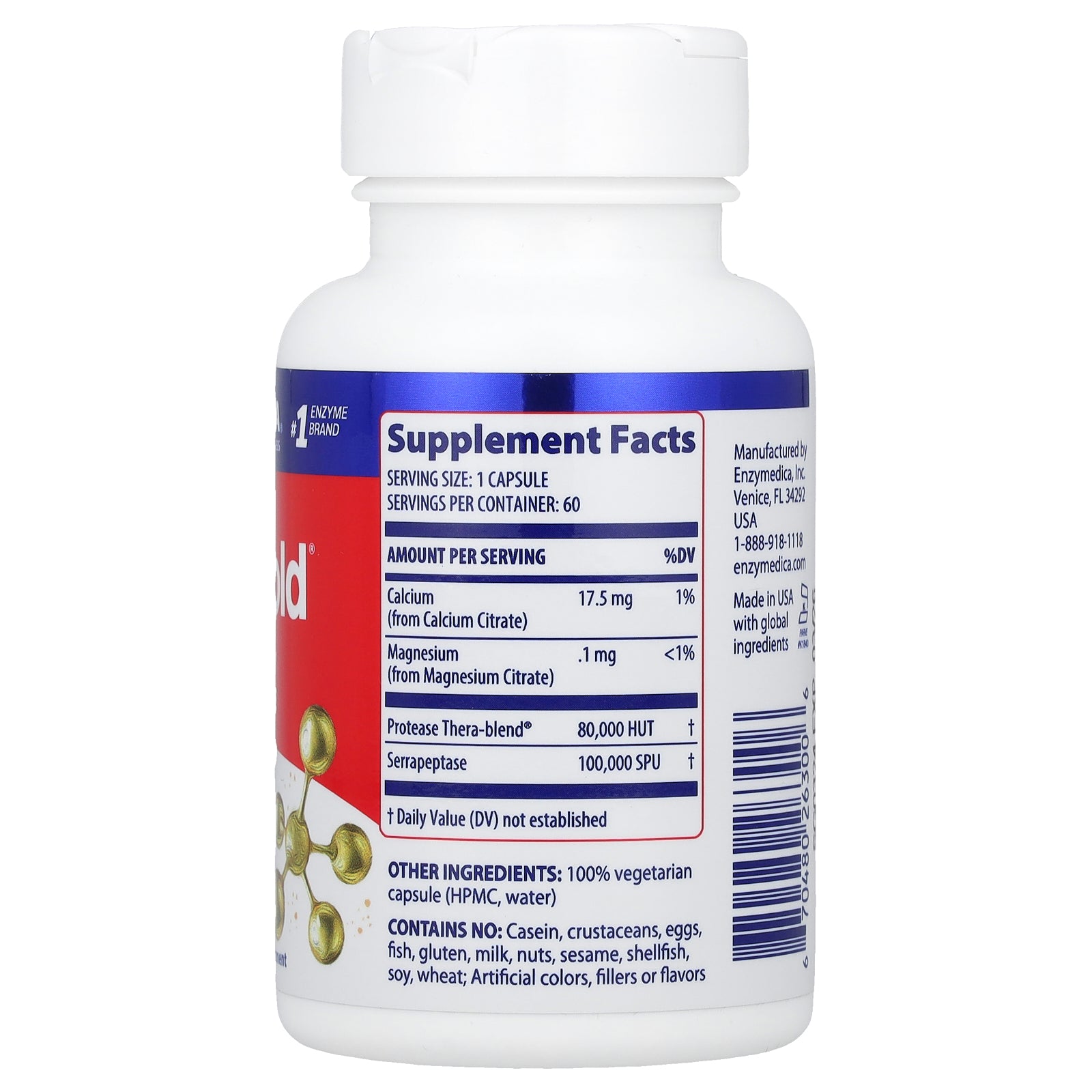Contains high-potency Serrapeptase combined with a blend of proteolytic enzymes. The vegan serrapeptase in SerraGold eliminates the need for enteric coating.