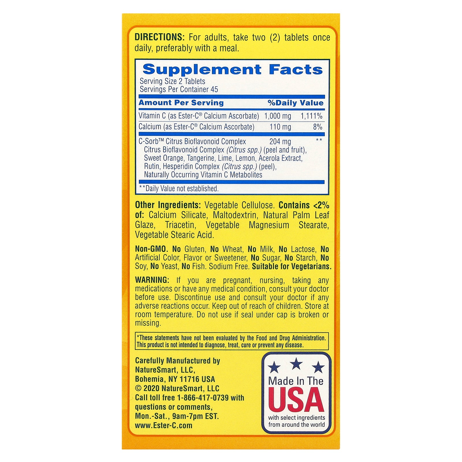 | Vitamin C (as Ester-C® Calcium Ascorbate) | 1,000 mg | 1,111% |