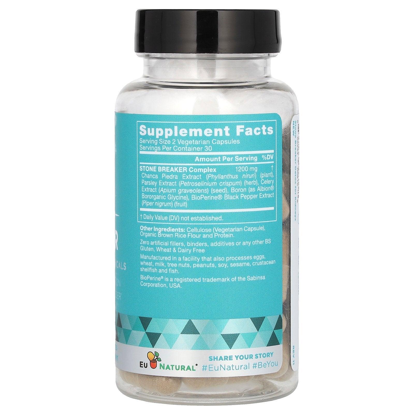 Stone Breaker Complex Chanca Piedra Extract (Phyllanthus niruri) (plant), Parsley Extract (Petroselinum crispum) (herb), Celery Extract (Apium graveolens) (seed), Boron (as Albion® Bororganic Glycine), BioPerine® Black Pepper Extract (piper nigrum) (fruit) |