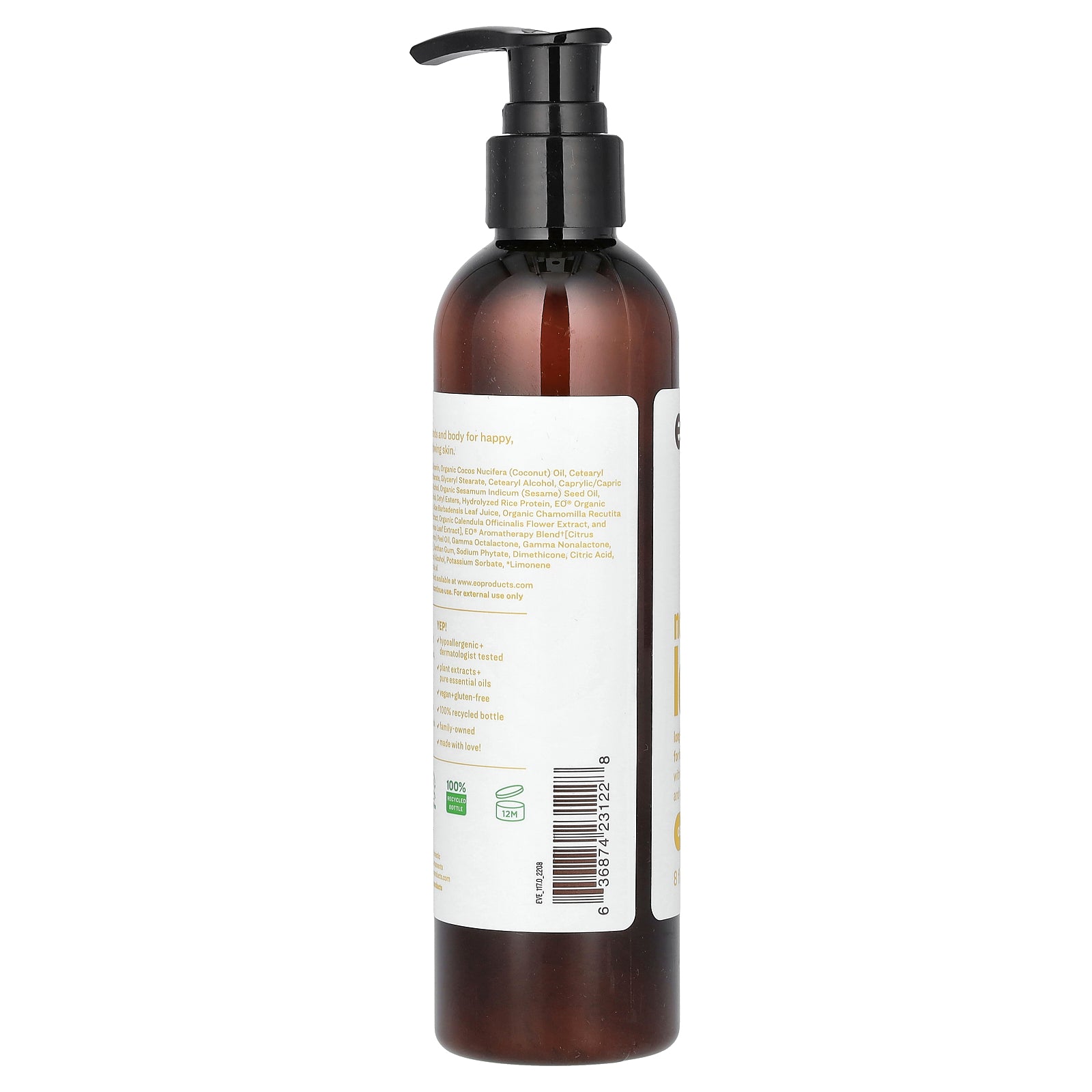 Water, glycerin, organic cocos nucifera (coconut) oil, cetearyl glucoside, sorbitan stearate, glyceryl stearate, cetearyl alcohol, caprylic/capric triglyceride, stearyl alcohol, organic sesamum indicum (sesame) seed oil, tocopherol, cetyl alcohol, cetyl esters, hydrolyzed rice protein, eo® organic herbal blend [organic aloe barbadensis leaf juice, organic chamomilla recutita (matricaria) flower extract, organic calendula officinalis flower extract, and organic camellia sinensis leaf extract], eo® aromatherapy blend[citrus medica limonum (lemon) peel oil, ethanol, gamma octalactone, gamma nonalactone, heliotropine, vanillin], xanthan gum, sodium phytate, dimethicone, citric acid, phenoxyethanol, benzyl alcohol, potassium sorbate, *limonene.