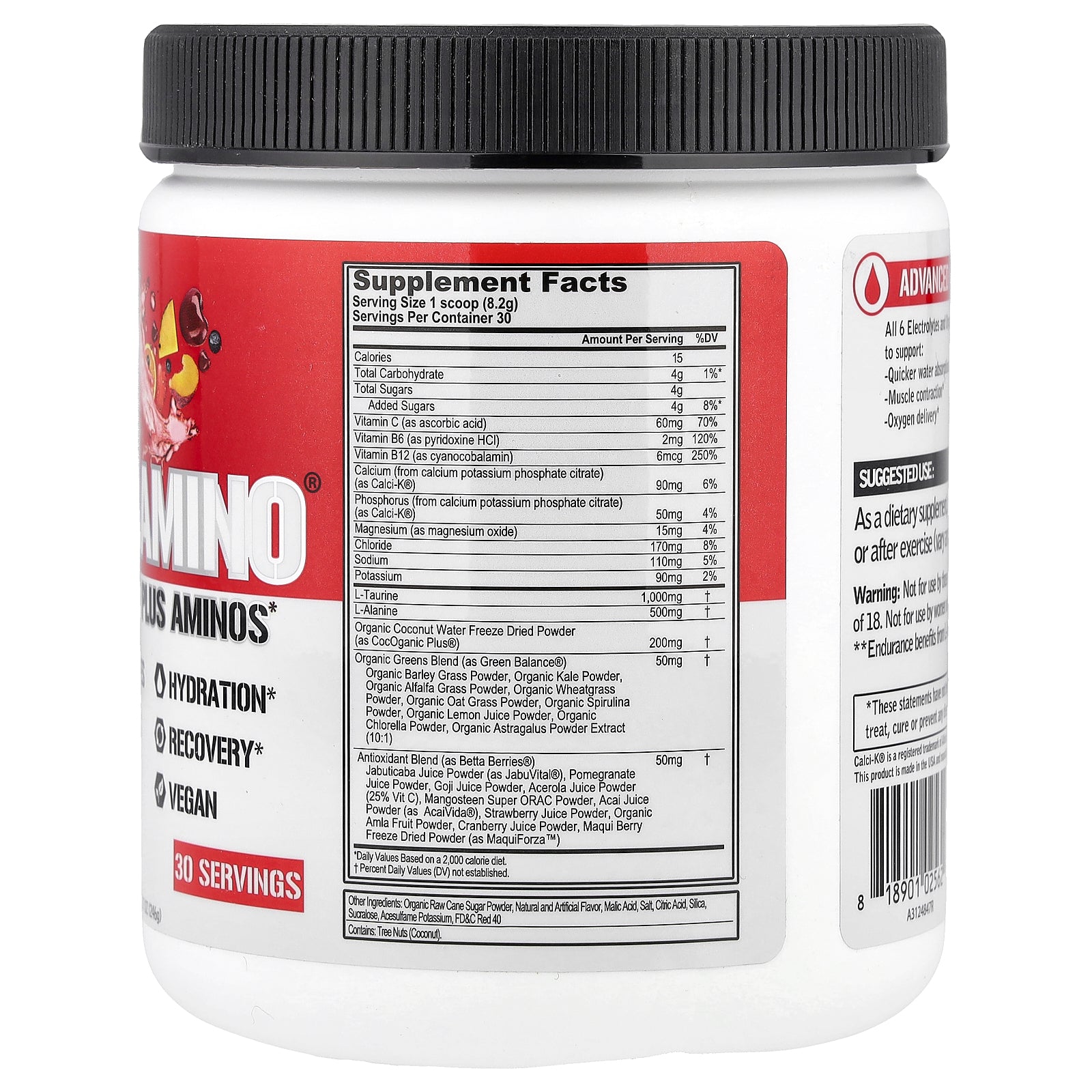 L-Alanine, B6, B12 and Electrolytes to support overall endurance and energy metabolism. Vitamin C + Antioxidants and Taurine to help reduce oxidative stress. Alkalizing greens to support healthy pH balance.