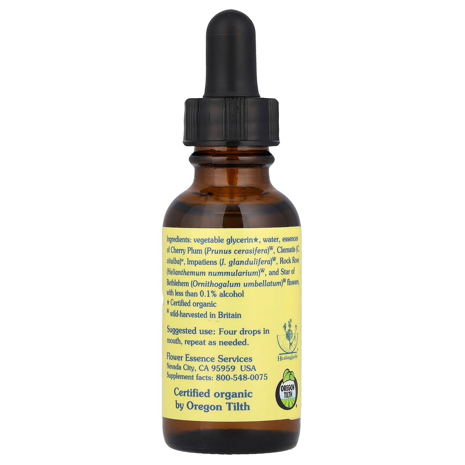 Vegetable glycerin*, water, essences of cherry plum (prunus cerasifera)w, clematis (c. vitalba)w, impatiens (i. glandulifera)W, rock rose (helianthemum nummularium)W, and star of bethlehem (ornithogalum umbellatum)W flowers, with less than 0.1% alcohol.