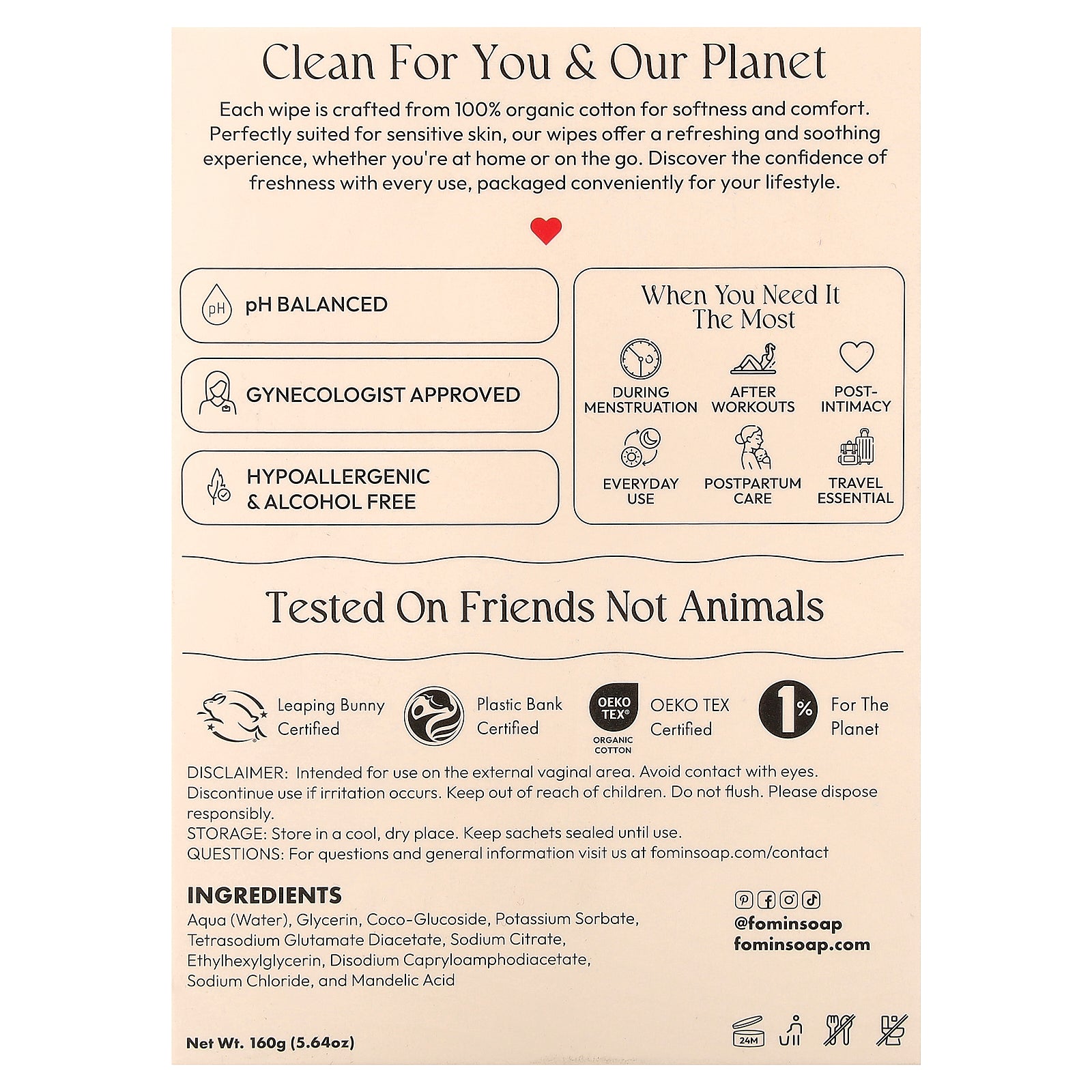 Each wipe is crafted from 100% organic cotton for softness and comfort. Perfectly suited for sensitive skin, our wipes offer a refreshing and soothing experience, whether you're at home or on the go. Discover the confidence of freshness with every use, packaged conveniently for your lifestyle.