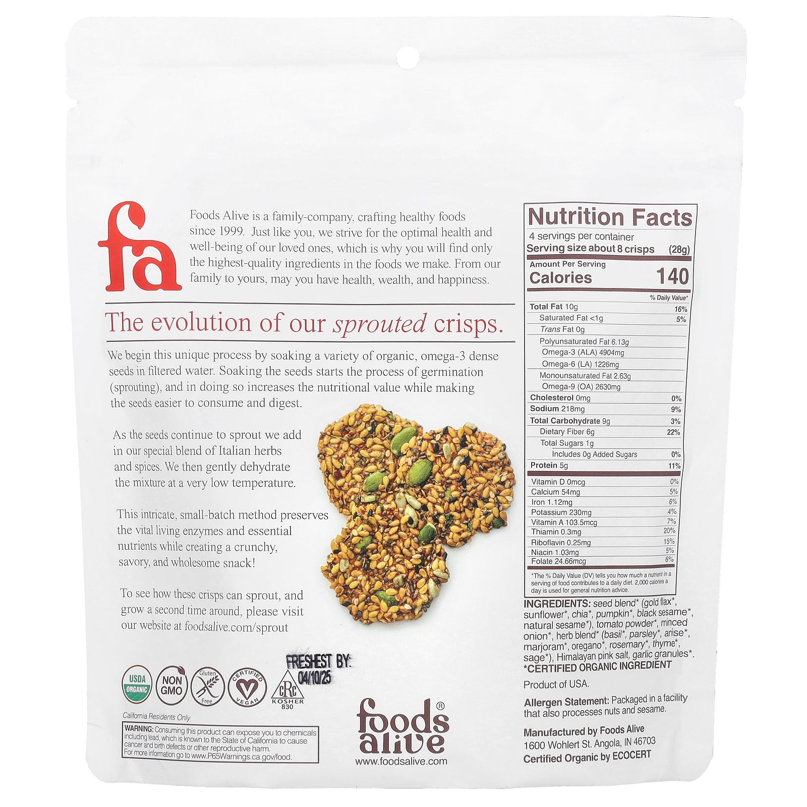 As the seeds continue to sprout we add in our special blend of Italian herbs and spices. We then gently dehydrate the mixture at a very low temperature.