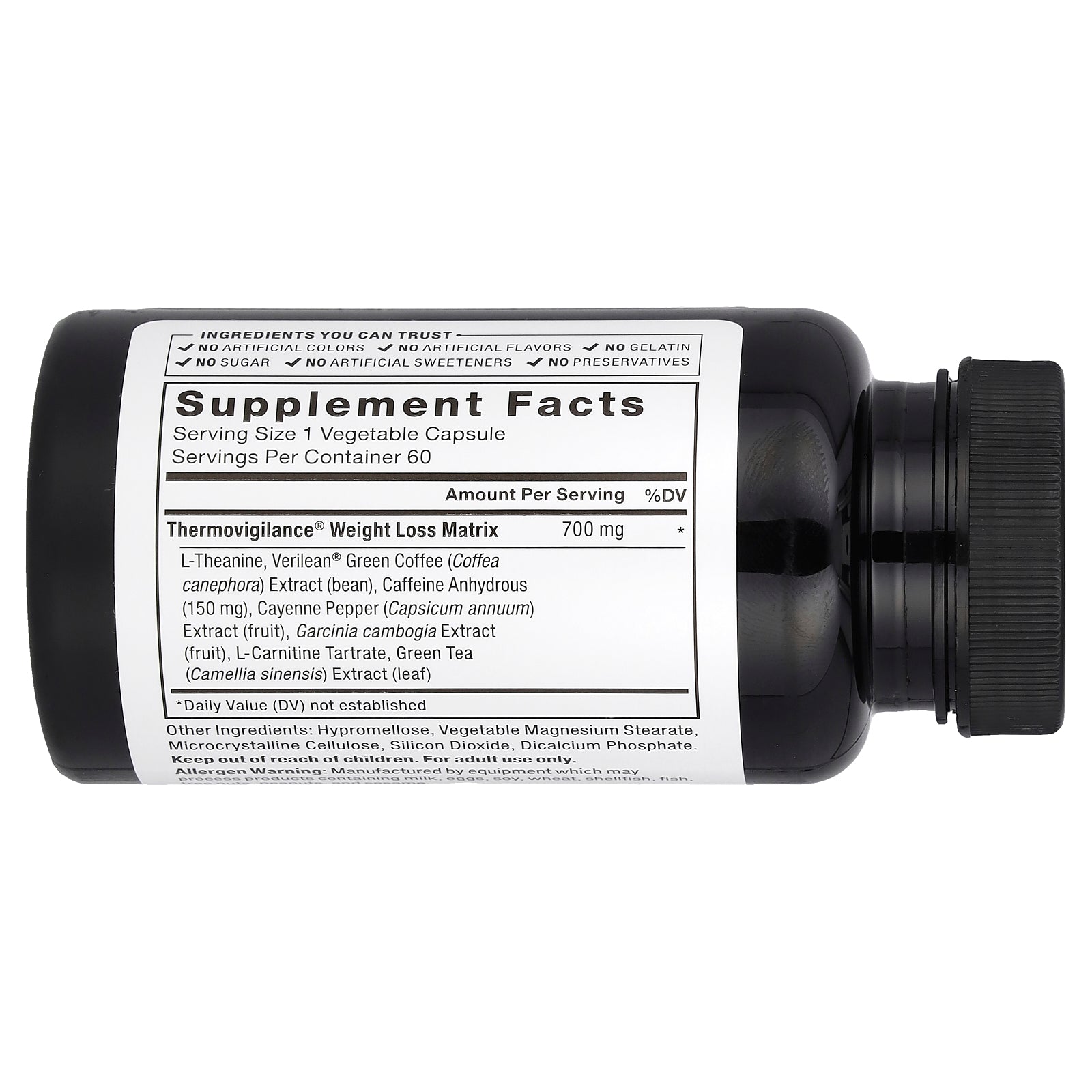 Thermovigilance® Weight Loss Matrix L-Theanine, Verilean® Green Coffee (Coffea canephora) Extract (bean), Caffeine Anhydrous (150 mg), Cayenne Pepper (Capsicum annuum) Extract (fruit), Garcinia cambogia Extract (fruit), L-Carnitine Tartrate, Green Tea (Camellia sinensis) Extract (leaf) |