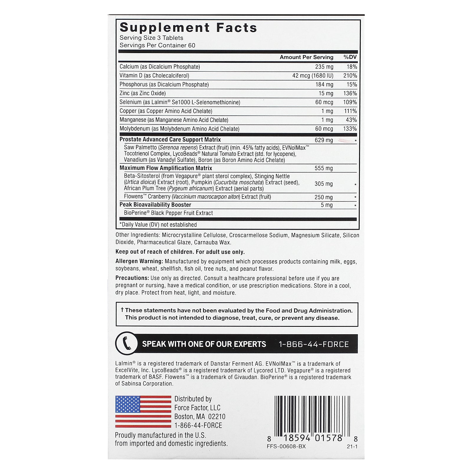 Each serving includes a fully substantiated dose of Vegapure® beta-sitosterol, saw palmetto extract, EVNolMax™ tocotrienol complex, lycopene from LycoBeads® tomato extract, and a proprietary cranberry extract called Flowens™, which has been clinically shown to improve the International Prostate Symptom Score by 25%.