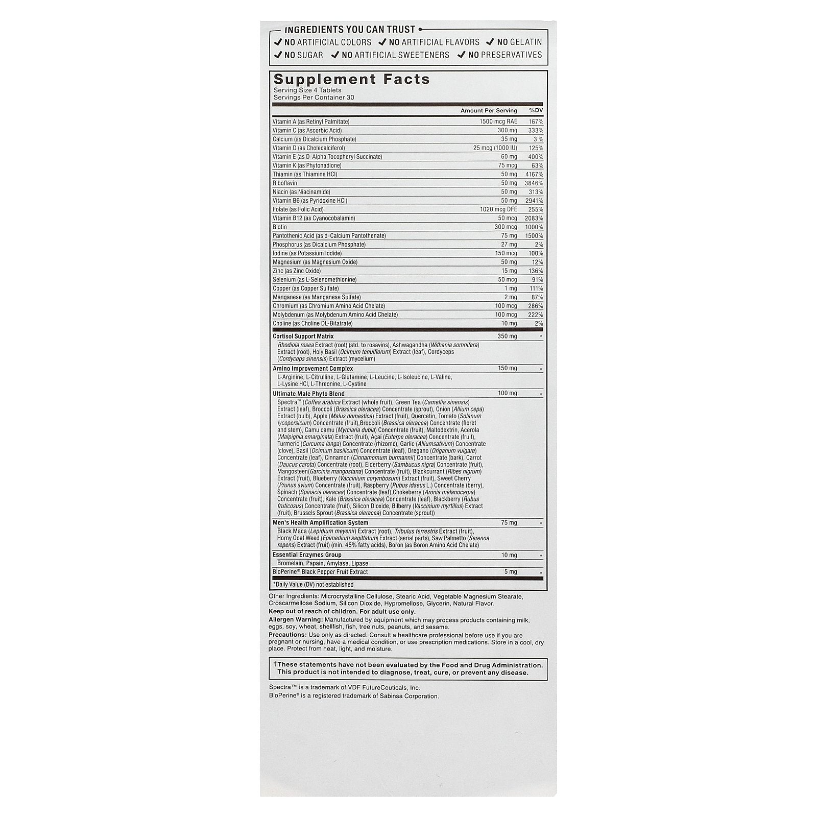 Ultimate Male Phyto Blend Spectra™ (Coffea arabica Extract (whole fruit), Green Tea (Camellia sinensis) Extract (leaf), Broccoli (Brassica oleracea) Concentrate (sprout), Onion (Allium cepa) Extract (bulb), Apple (Malus domestica) Extract (fruit), Quercetin, Tomato (Solanum lycopersicum) Concentrate (fruit), Broccoli (Brassica oleracea) Concentrate (floret and stem), Camu camu (Myrciaria dubia) Concentrate (fruit), Maltodextrin, Acerola (Malpighia emarginata) Extract (fruit), Acai (Euterpe oleracea) Concentrate (fruit), Turmeric (Curcuma longa) Concentrate (rhizome), Garlic (Allium sativum) Concentrate (clove), Basil (Ocimum basilicum) Concentrate (leaf), Oregano (Origanum vulgare) Concentrate (leaf), Cinnamon (Cinnamomum burmannii) Concentrate (bark), Carrot (Daucus carota) Concentrate (root), Elderberry (Sambucus nigra) Concentrate (fruit), Mangosteen (Garcinia mangostana) Concentrate (fruit), Blackcurrant (Ribes nigrum) Extract (fruit), Blueberry (Vaccinium corymbosum) Extract (fruit), Sweet Cherry (Prunus avium) Concentrate (fruit), Raspberry (Rubus idaeus L.) Concentrate (berry), Spinach (Spinacia oleracea) Concentrate (leaf), Chokeberry (Aronia melanocarpa) Concentrate (fruit), Kale (Brassica oleracea) Concentrate (leaf), BlackBerry (Rubus fruticosus) Concentrate (fruit), Silicon Dioxide, Bilberry (Vaccinium myrtillus) Extract (fruit), Brussels Sprout (Brassica oleracea) Concentrate (sprout)) |