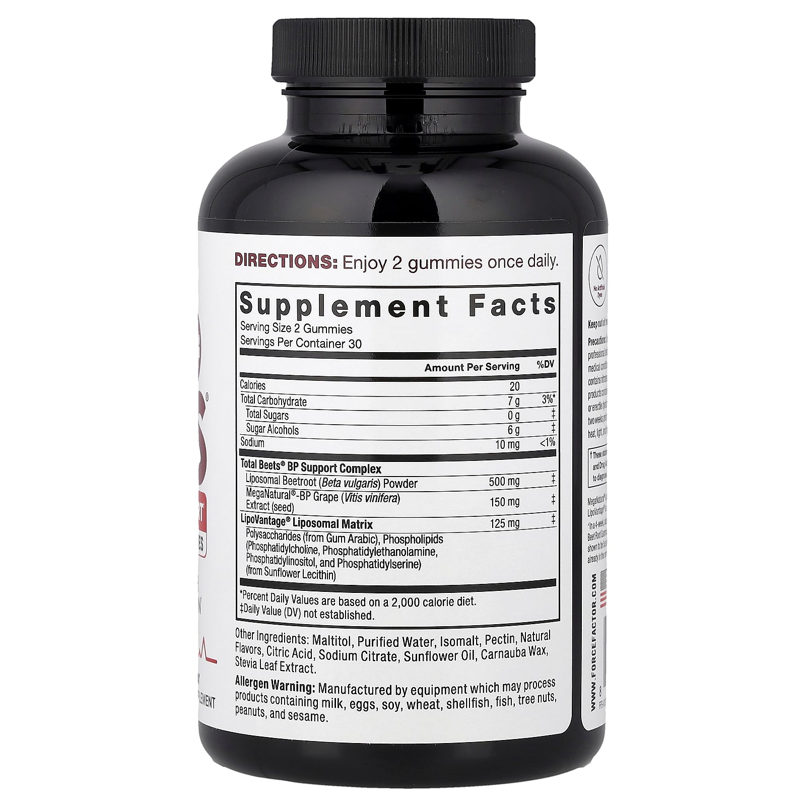 ^In a 4-week, double-blind, placebo-controlled study, Total Beets® Beet Root Gummies' key ingredient, MegaNatural®-BP, was clinically shown to be 5x as effective at promoting normal blood pressure already in the normal range than a healthy lifestyle alone.