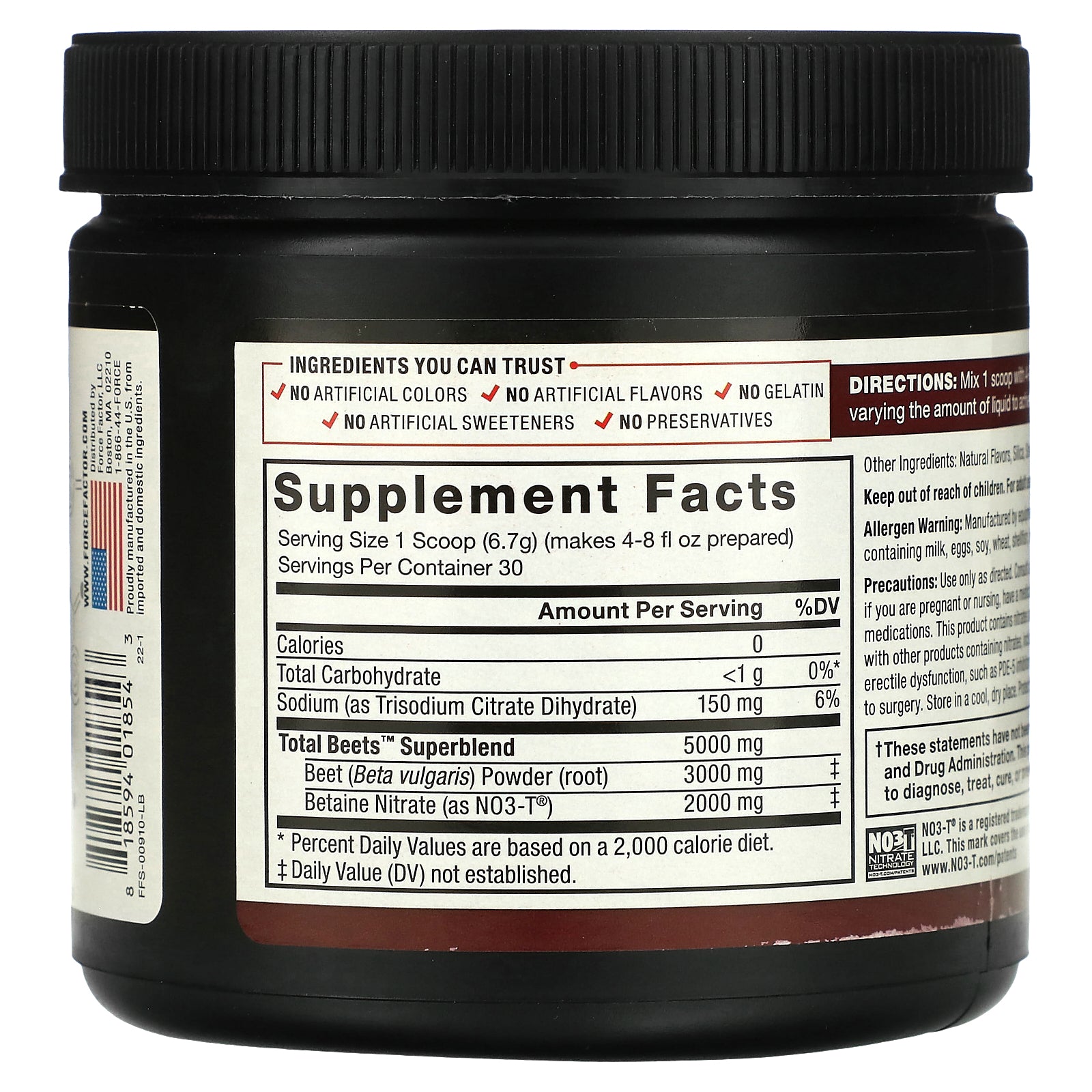 Total Beets™ original powder is a great-tasting, heart-healthy drink mix that contains natural beetroot and innovative NO3-T® nitrates to boost nitric oxide production and support healthy blood flow. This helps you experience more energy, endurance, and stamina without having to use heart-straining stimulants.