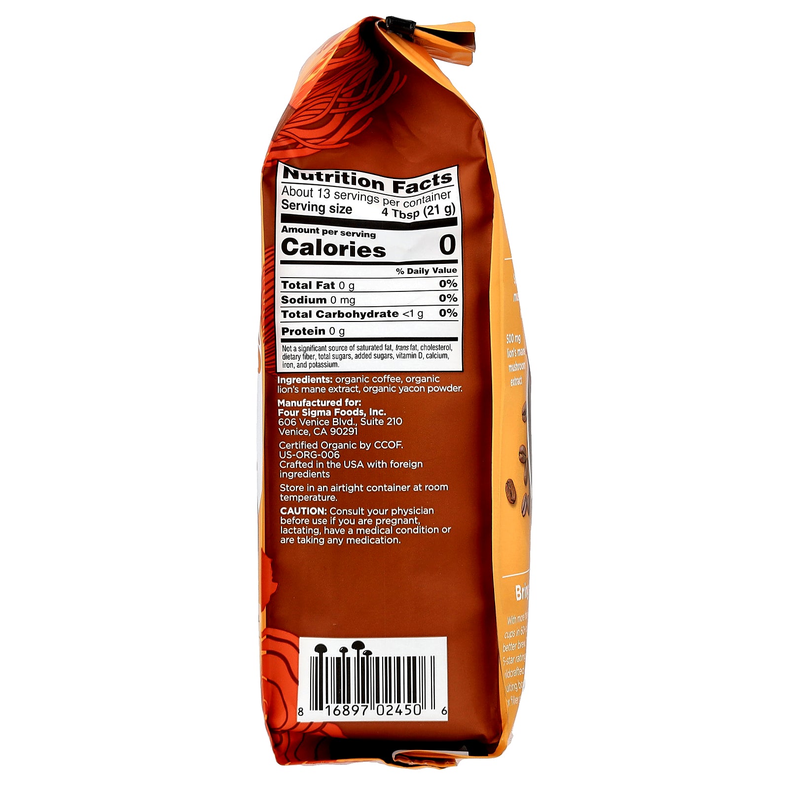 Organic coffee, organic lion's mane extract, organic yacon powder.