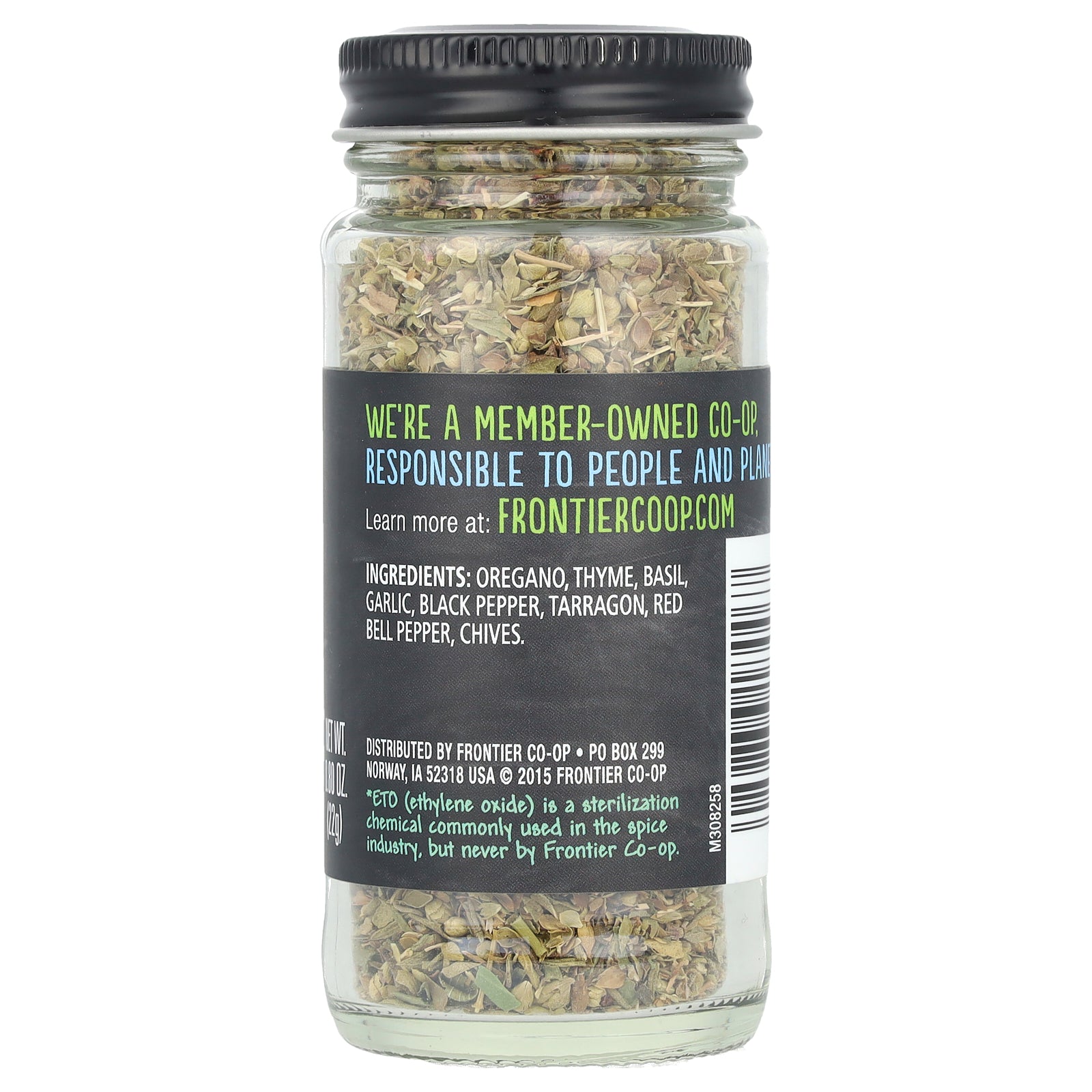 Oregano, thyme, basil, garlic, black pepper, tarragon, red bell pepper, chives.