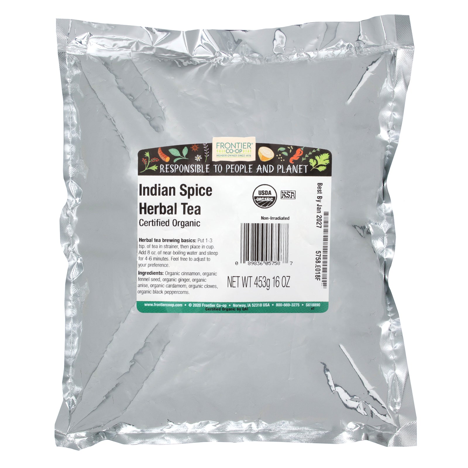 Frontier Co-op® Indian Spice Tea is a spicy herbal blend with a smooth flavor with delicate floral notes.