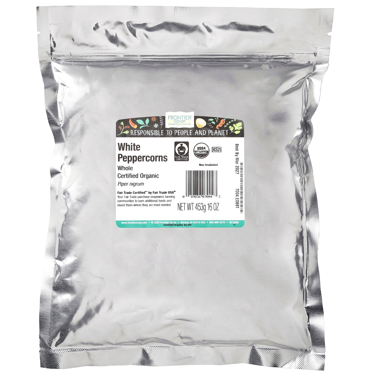 Frontier Co-op, Organic Whole White Peppercorns, 16 oz (453 g)