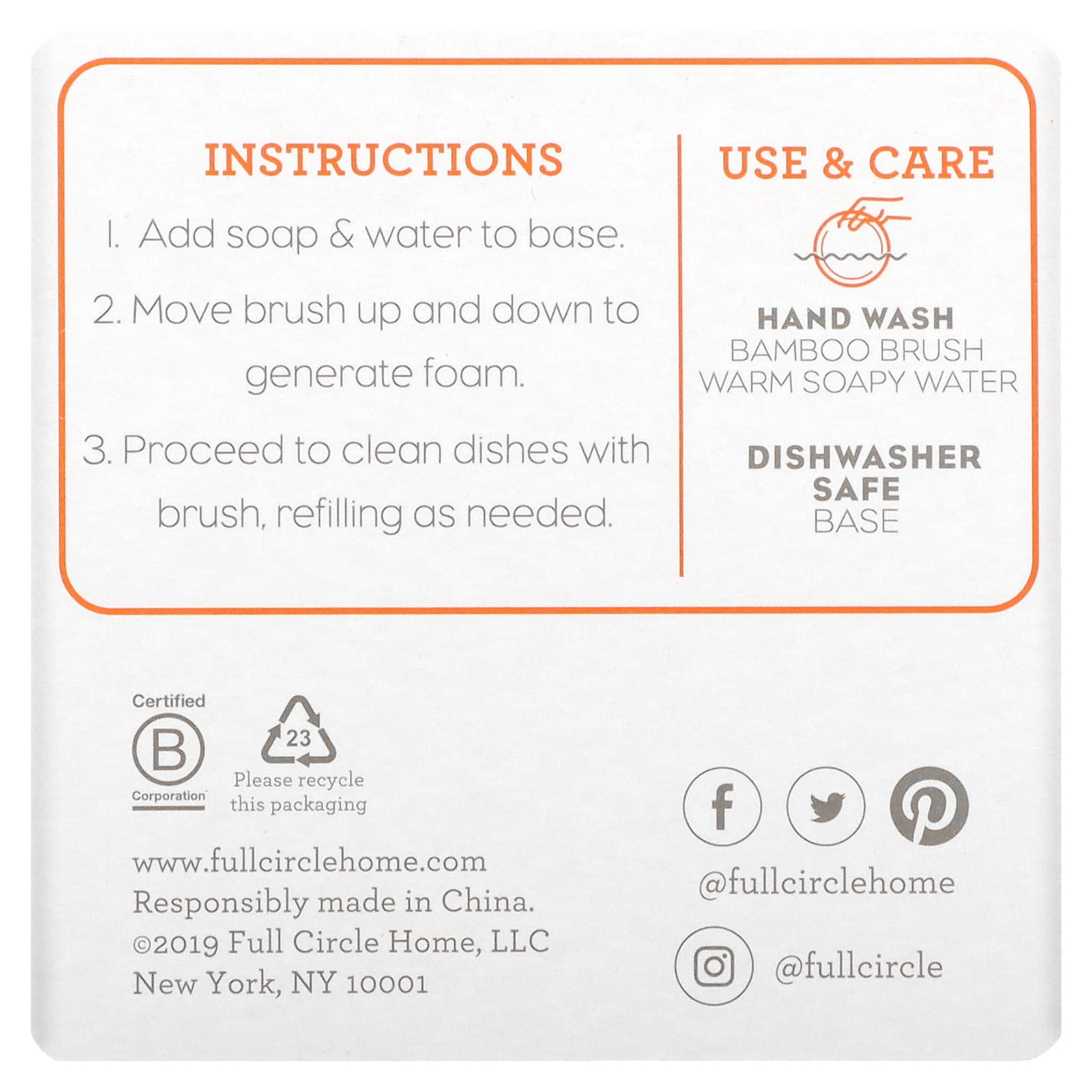 Comes with replaceable bamboo dish brush.
