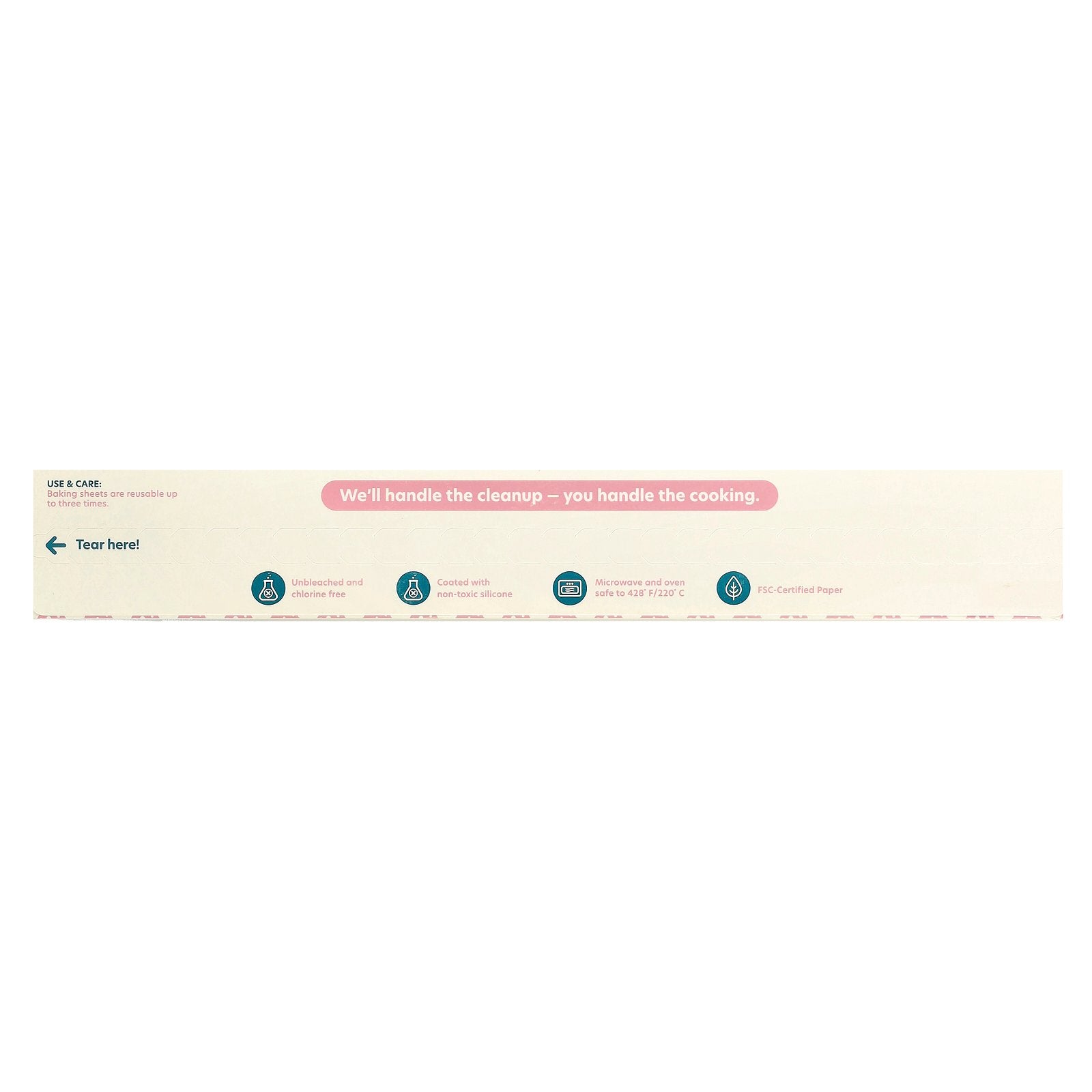 Baking sheets are reusable up to three times.