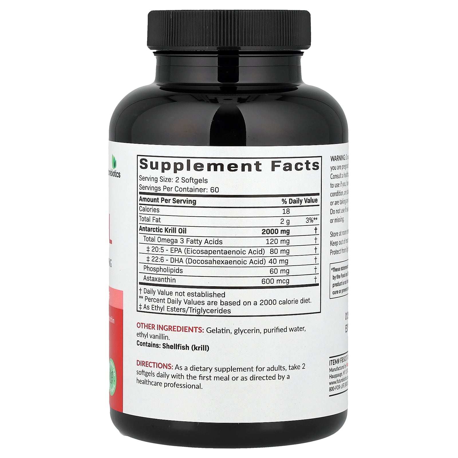 Harvested from the fresh cold waters of the Antarctic, Futurebiotics Antarctic Krill Oil 2000 MG naturally provides essential omega-3 fatty acids EPA/DHA, phospholipids, astaxanthin, and a superior 2000 mg of premium Krill per serving. By naturally supplying these nutrients, Futurebiotics Antarctic Krill Oil 2000 MG supports cardiovascular health, brain function, and joints/mobility.* Lab tested for purity and potency, Futurebiotics Antarctic Krill Oil 2000 MG provides high-quality krill that is consistently harvested from the fresh Antarctic waters.