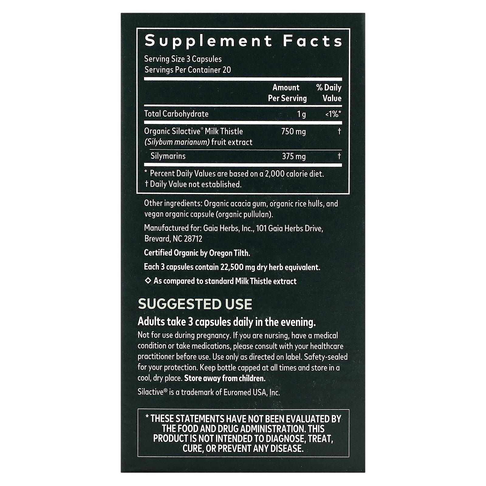 | Organic Silactive® Milk Thistle (Silybum marianum) seed extract | 750 mg | † |
