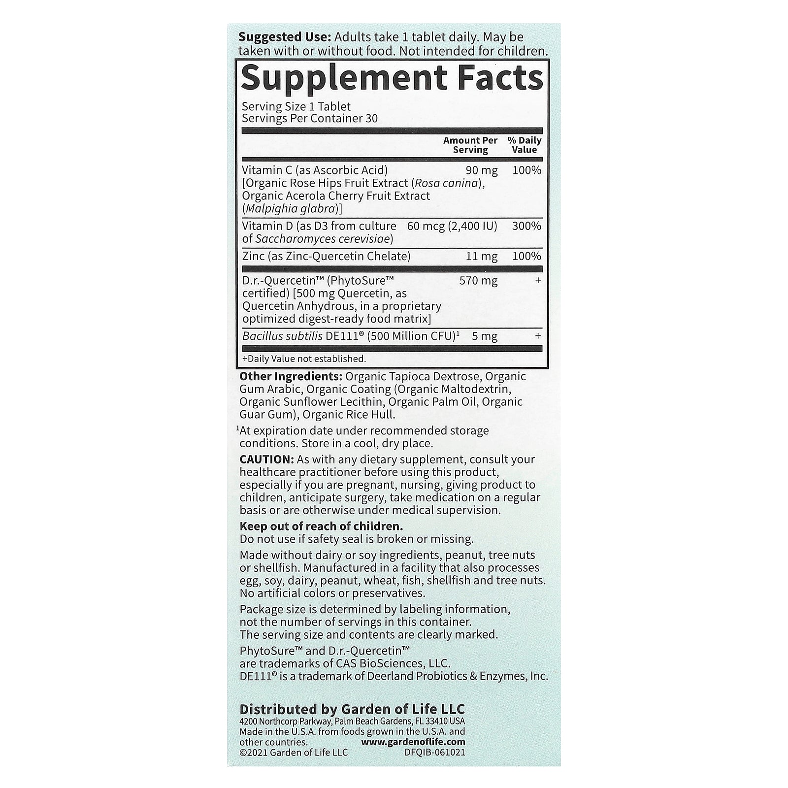 | Zinc (as Zinc-Quercetin Chelate) | 11 mg | 100% |