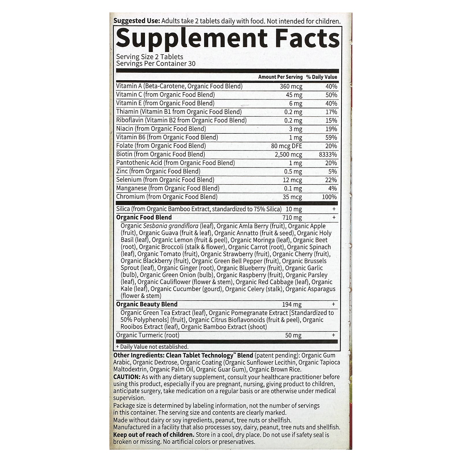 | Biotin (from Organic Food Blend) | 2,500 mcg | 8333% |