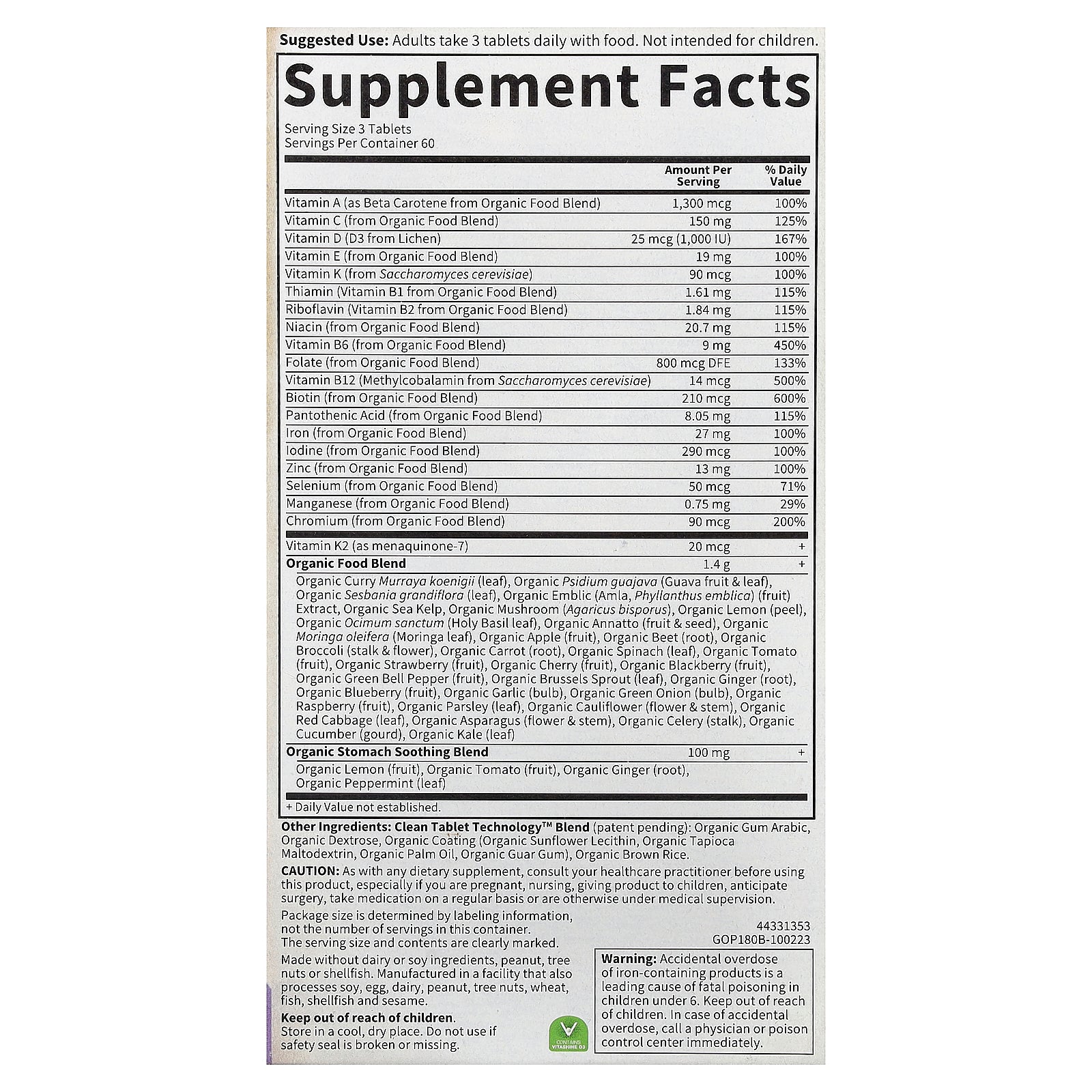 | Iron (from Organic Food Blend) | 27 mg | 100% |