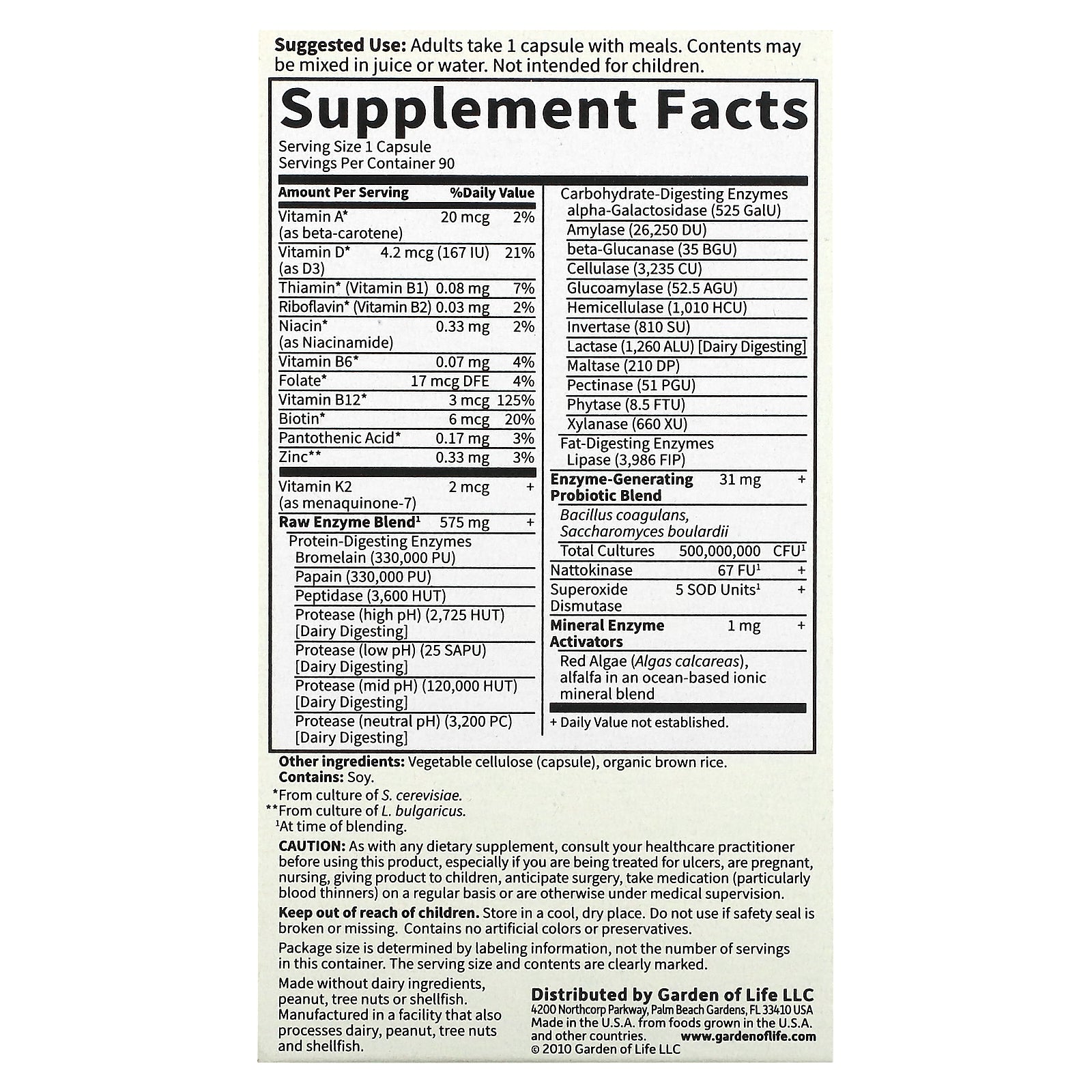 | + Daily Value not established. *From culture of S. cerevisiae **From culture of L. bulgaricus. ¹ At time of blending | ||