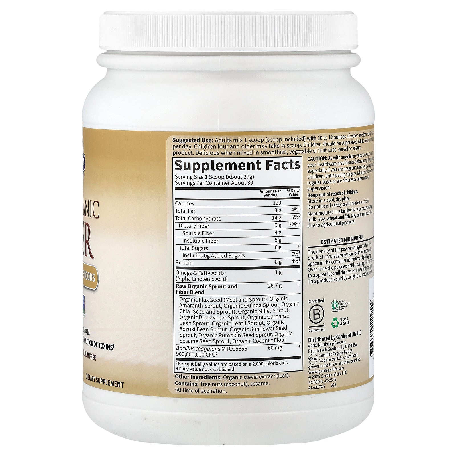 Raw Organic Fiber features a soothing and nourishing blend of both soluble and insoluble fiber from organic sprouted seeds, grains and legumes, with no harsh fibers such as psyllium, which can be punishing to sensitive colons.