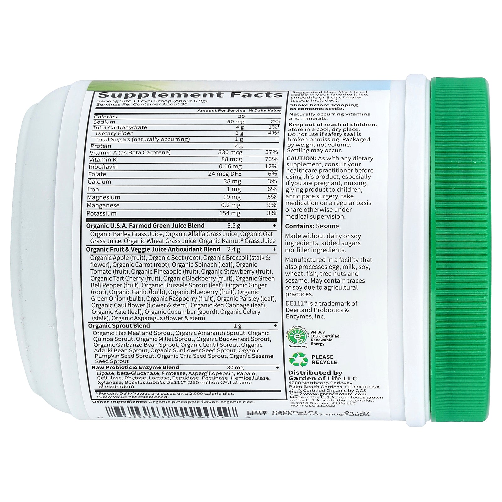 Raw Organic Perfect Food® is packed with 40 nutrient-dense ingredients, including freshly harvested greens that are low-temperature dried to lock in nutrition, along with sprouts, fruit & veggies, plus live probiotics and enzymes for digestion.