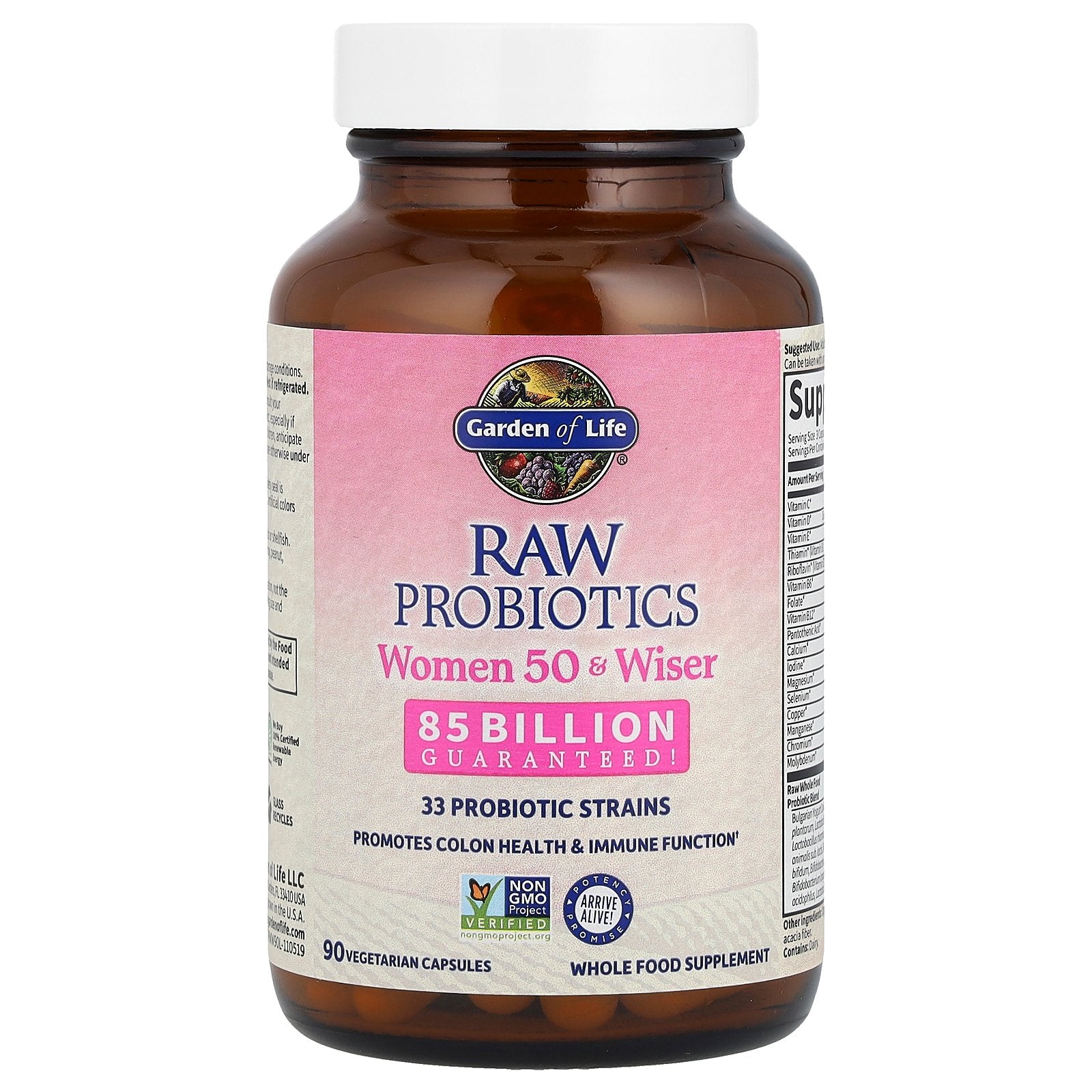 Raw Probiotics Women 50 & Wiser is a high potency, whole food probiotic formula featuring probiotic strains clinically studied to support immune health and overall digestive function.