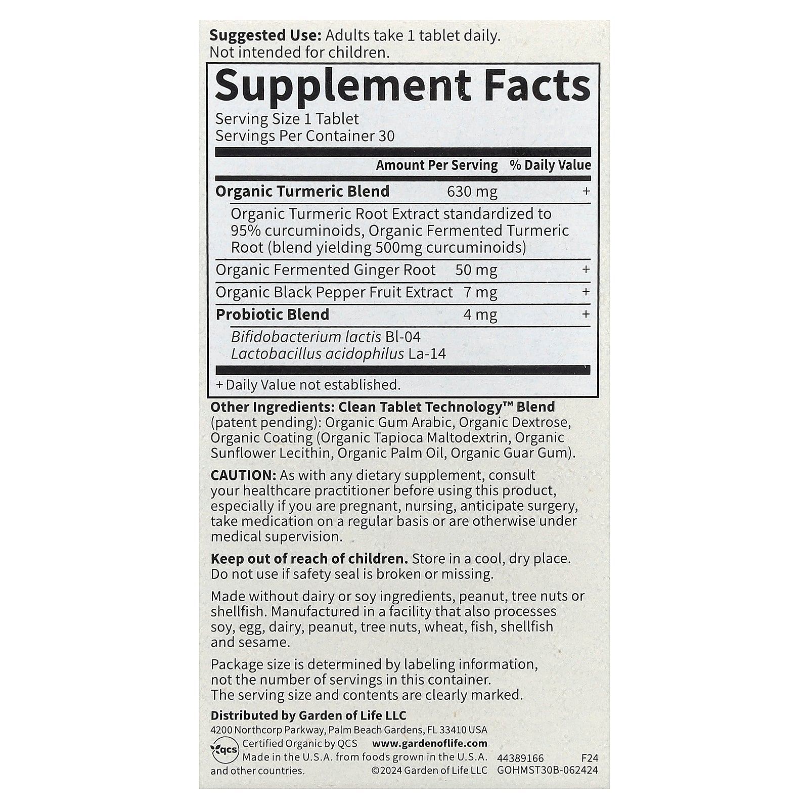 Organic Turmeric Blend Organic Turmeric Root Extract standardized to 95% curcuminoids, Organic Fermented Turmeric Root (blend yielding 500 mg curcuminoids) |