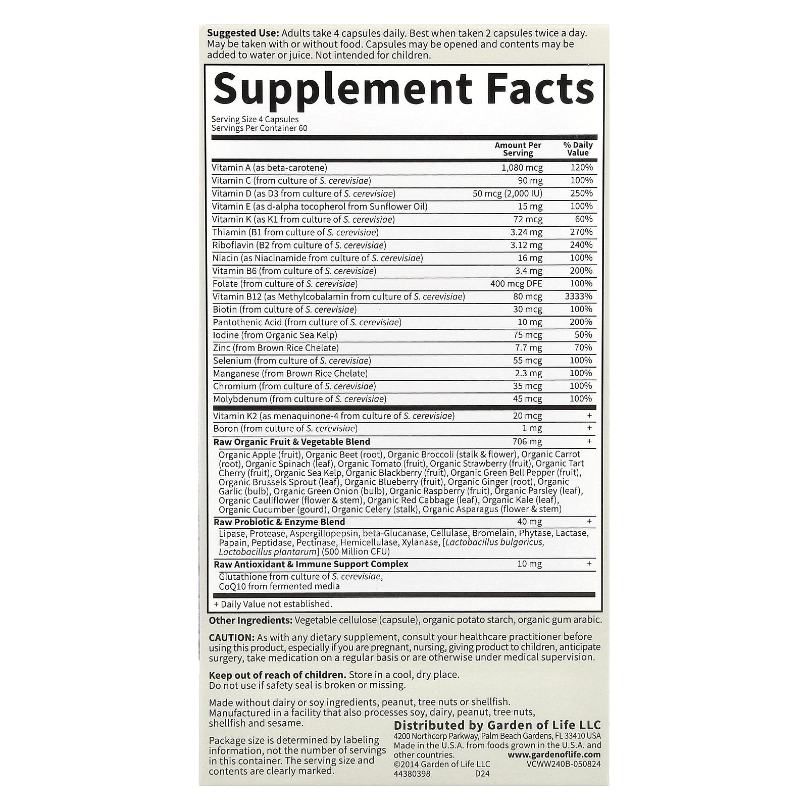 RAW Organic Fruit & Vegetable Blend Organic Apple (fruit), Organic Beet (root), Organic Broccoli (stalk & flower), Organic Carrot (root), Organic Spinach (leaf), Organic Tomato (fruit), Organic Strawberry (fruit), Organic Tart Cherry (fruit), Organic Sea Kelp, Organic Blackberry (fruit), Organic Green Bell Pepper (fruit), Organic Brussels Sprout (leaf), Organic Blueberry (fruit), Organic Ginger (root), Organic Garlic (bulb), Organic Green Onion (bulb), Organic Raspberry (fruit), Organic Parsley (leaf), Organic Cauliflower (flower & stem), Organic Red Cabbage (leaf), Organic Kale (leaf), Organic Cucumber (gourd), Organic Celery (stalk), Organic Asparagus (flower & stem) |