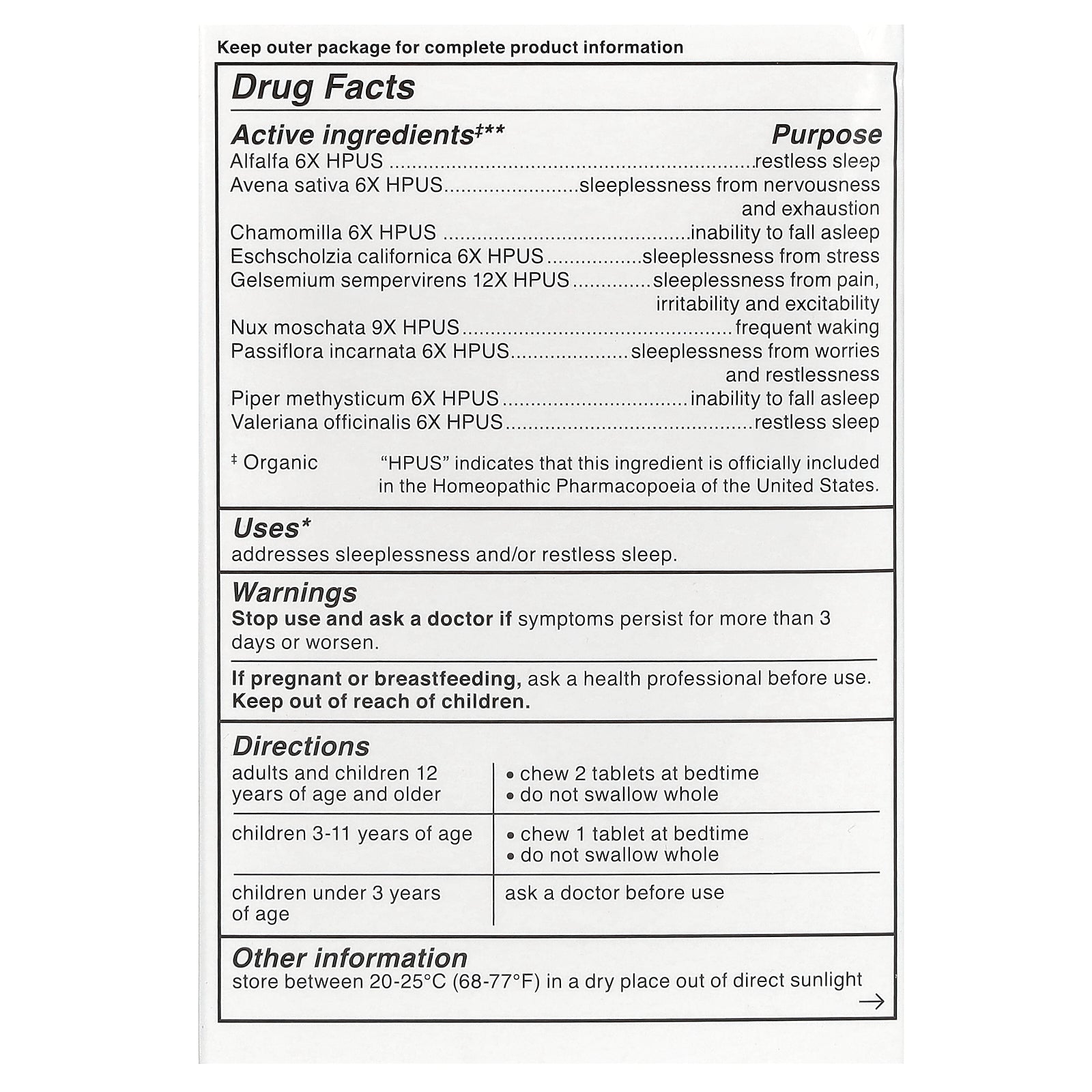 Uses: Addresses sleeplessness and/or restless sleep.